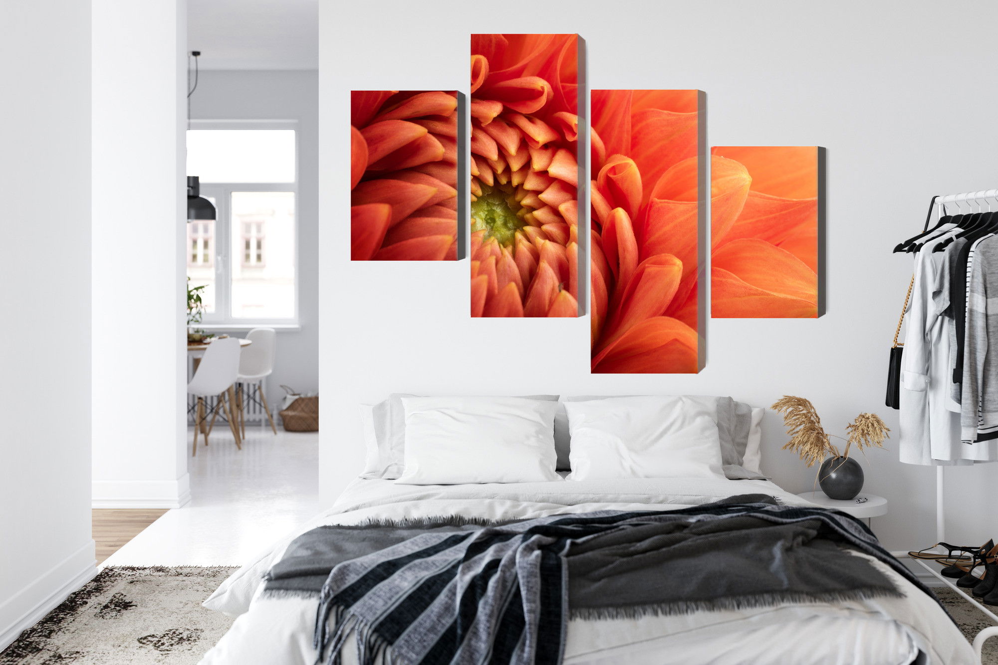 En ljuddämpande tavla Orange chrysanthemum är mer än en väggdekoration. En ljuddämpande tavla från SilentDirect bidrar till att skapa en mer sammanhållen akustik där störande efterklang minskar och samtal upplevs tydligare. Genom att kombinera akustisk funktion med omsorgsfullt utvalda material och premiumtryck får du en lösning som både förbättrar ljudmiljön och förstärker intrycket av rummet.