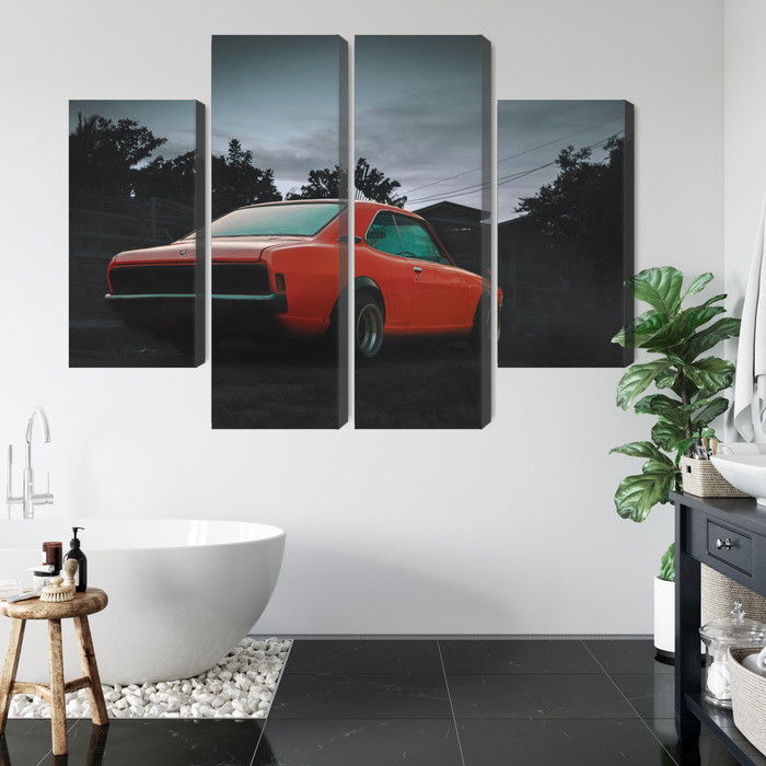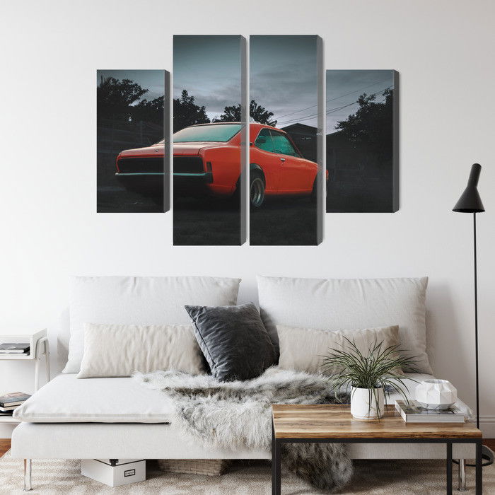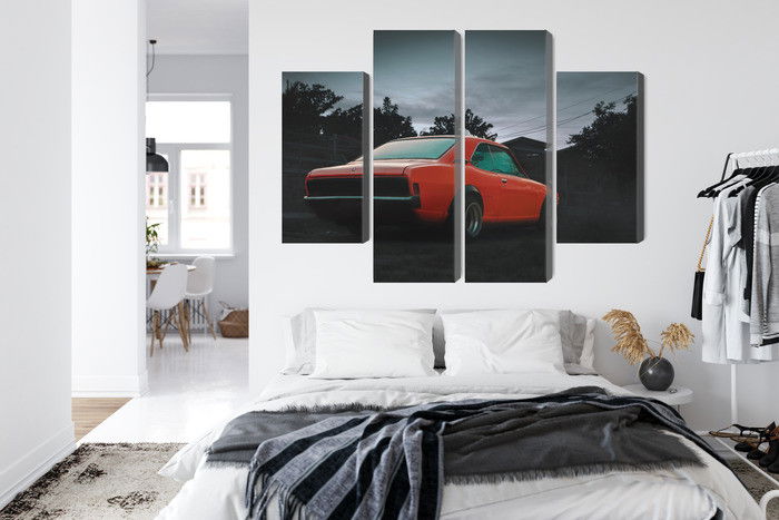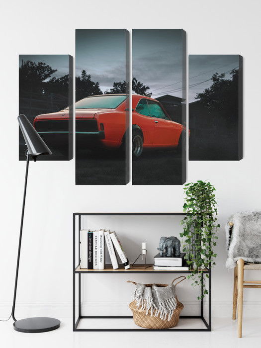 Ljuddämpande tavla – Orange retro car för lugnare rum och mjukare akustik