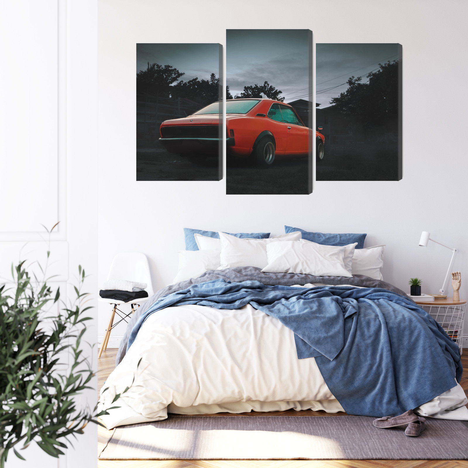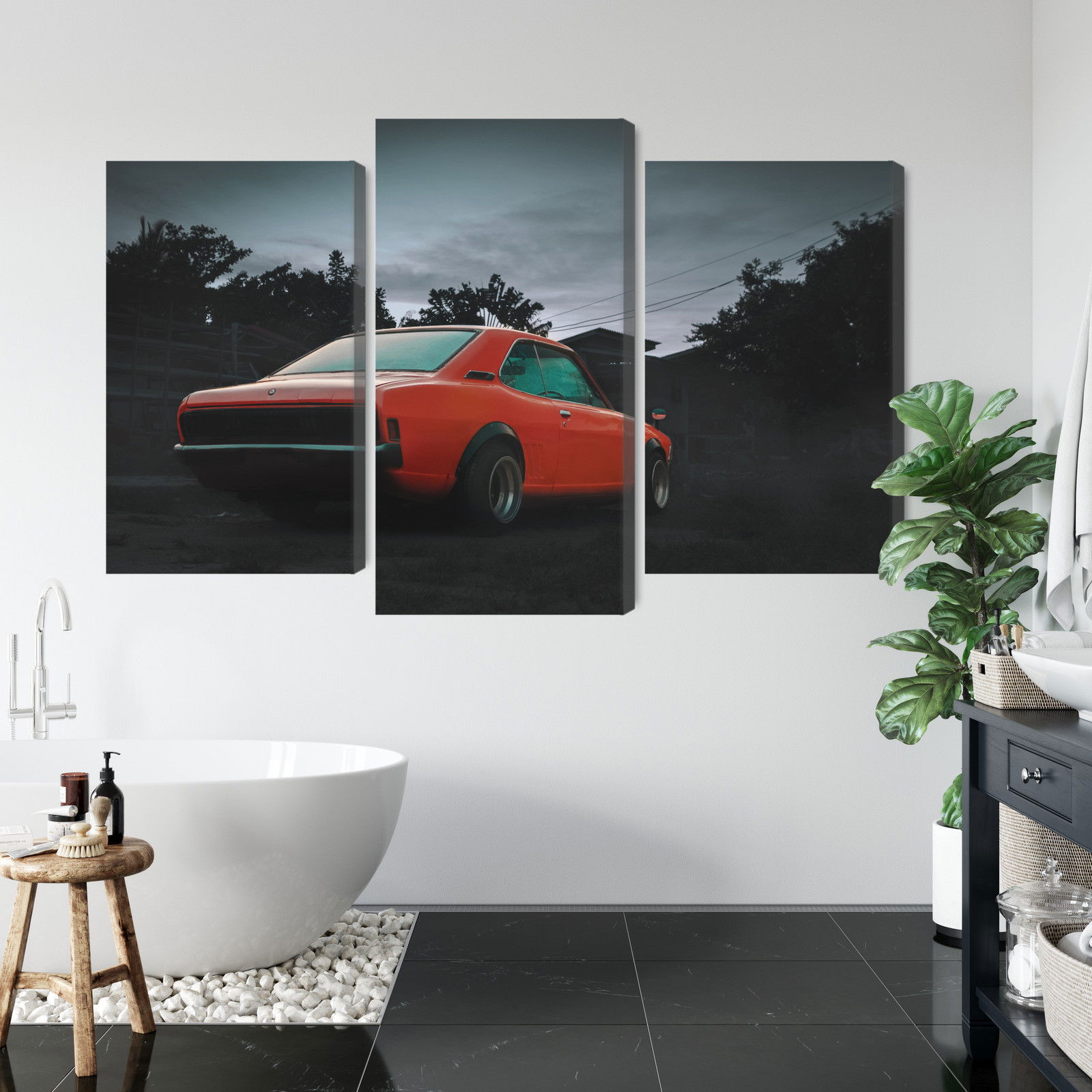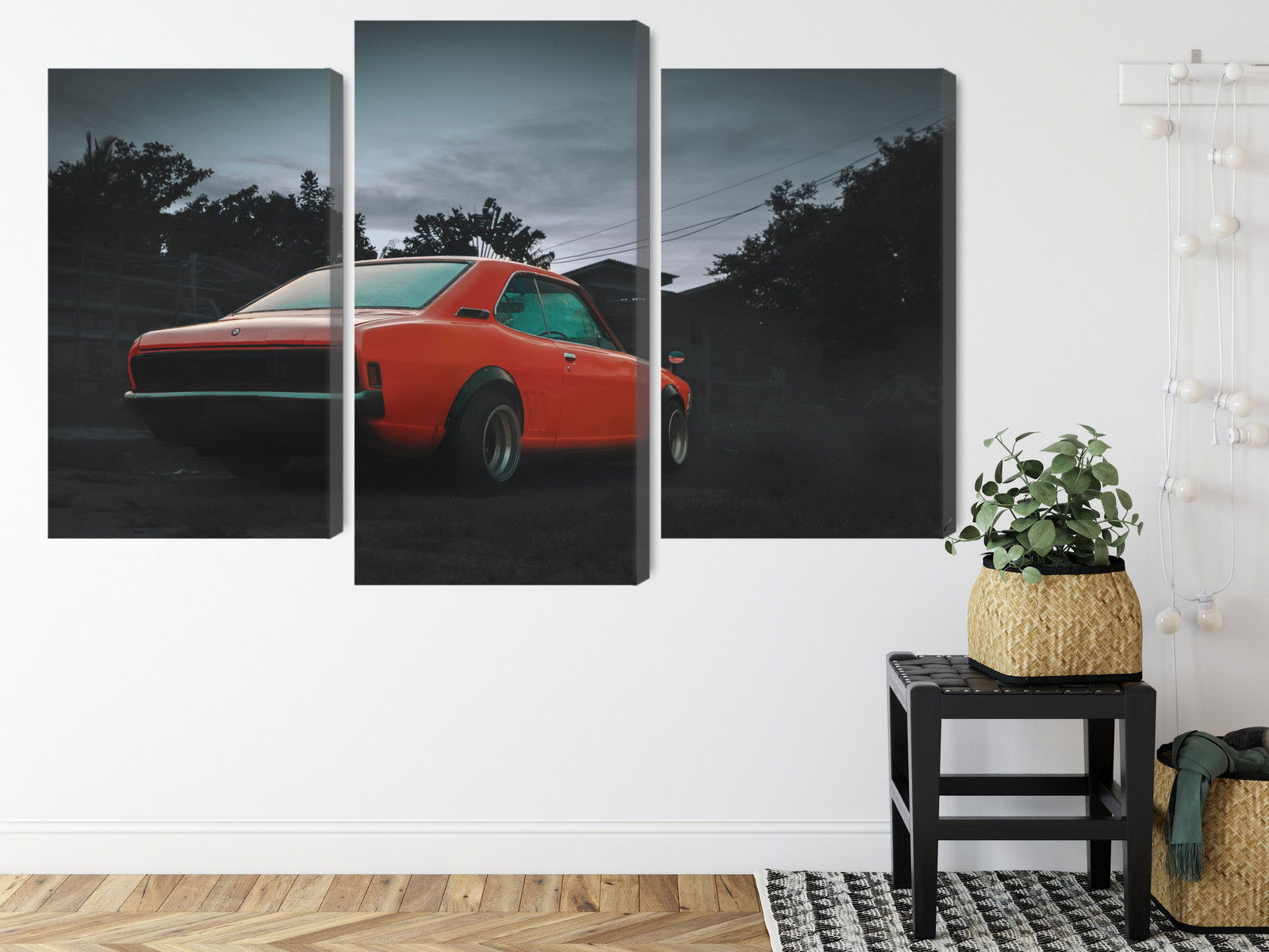 Ljuddämpande tavla – Orange retro car för lugnare rum och mjukare akustik