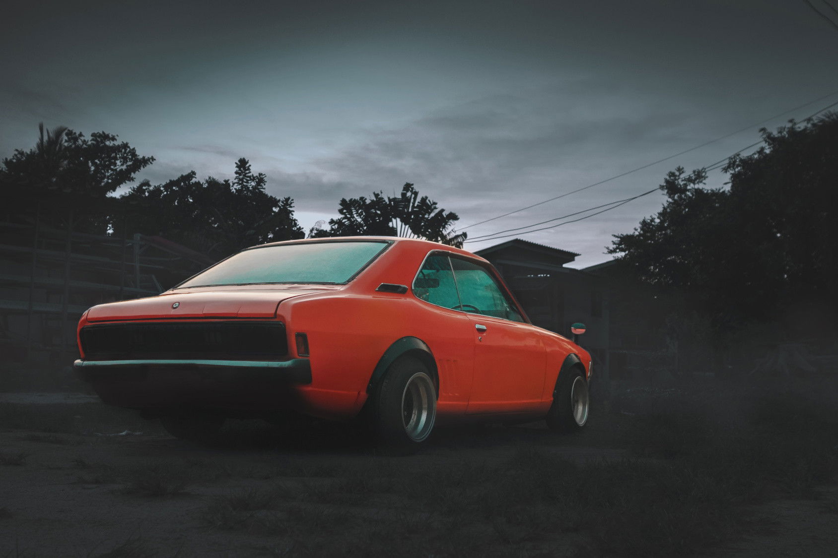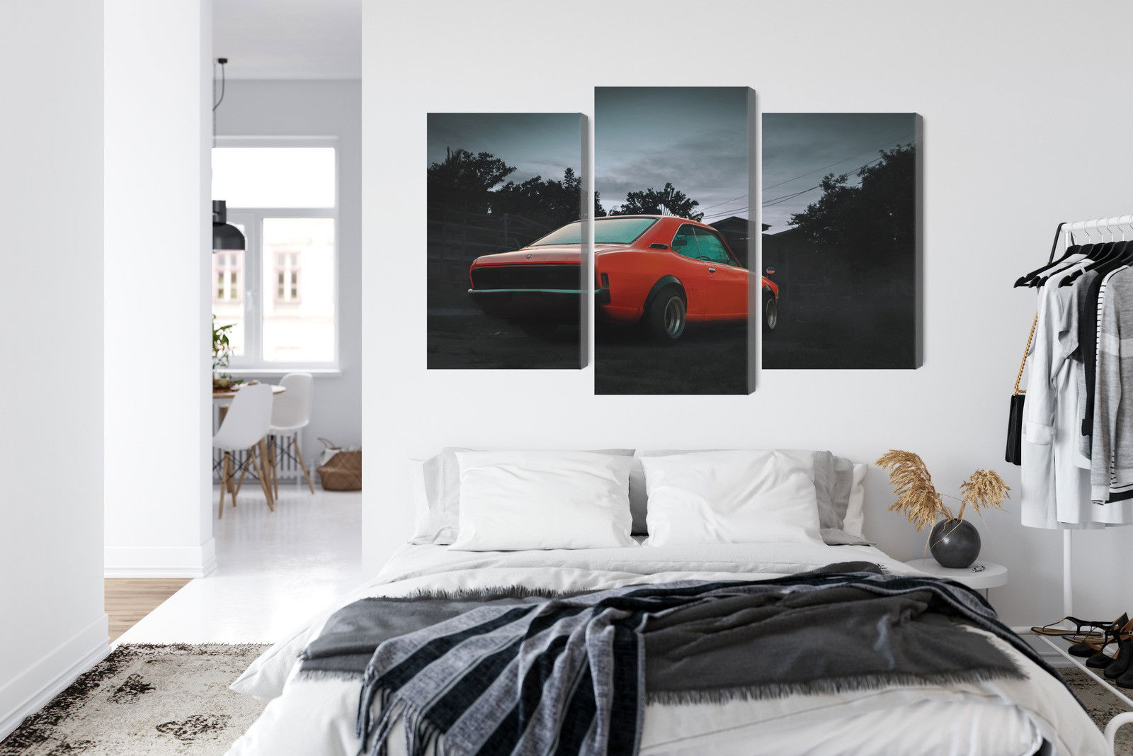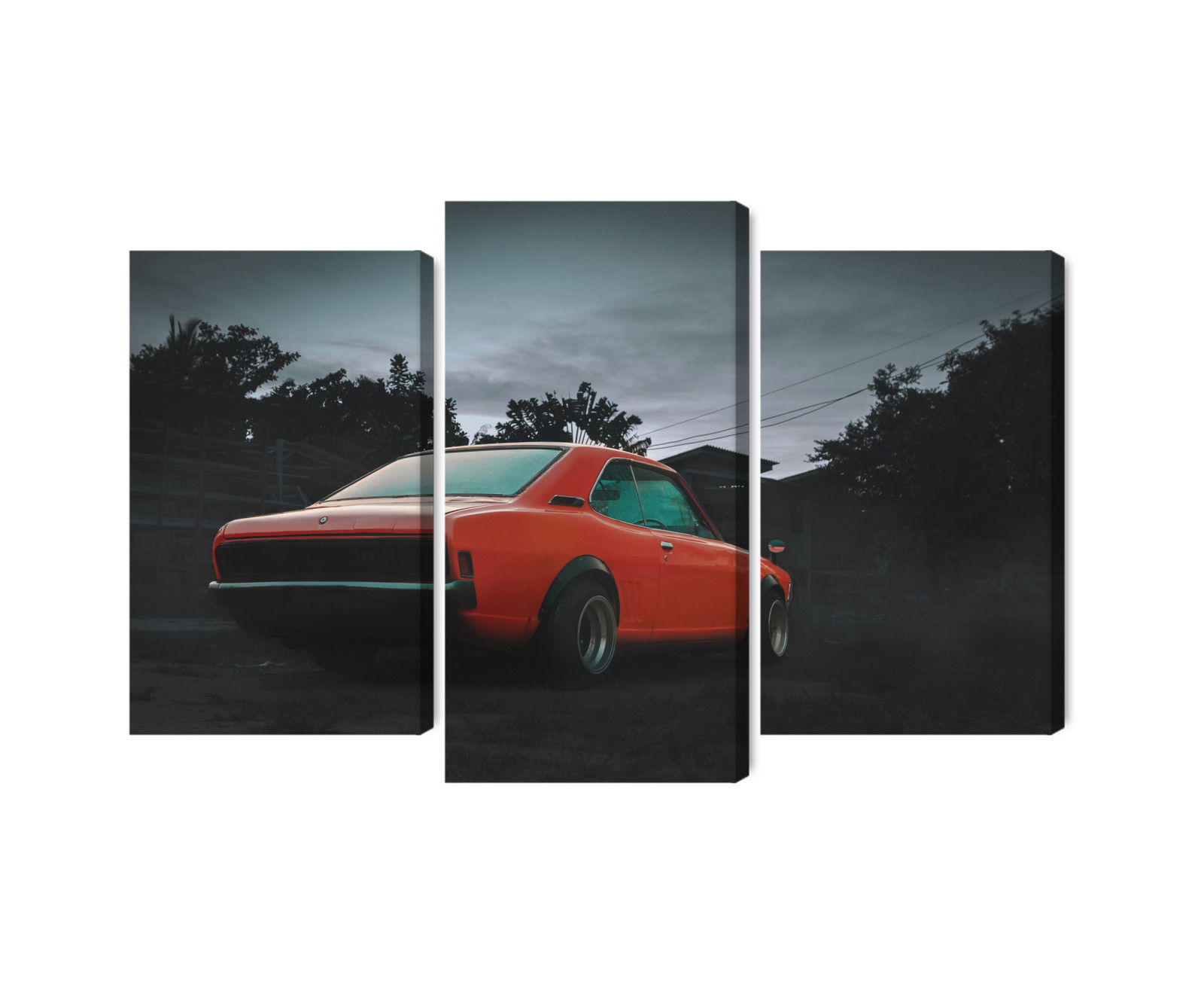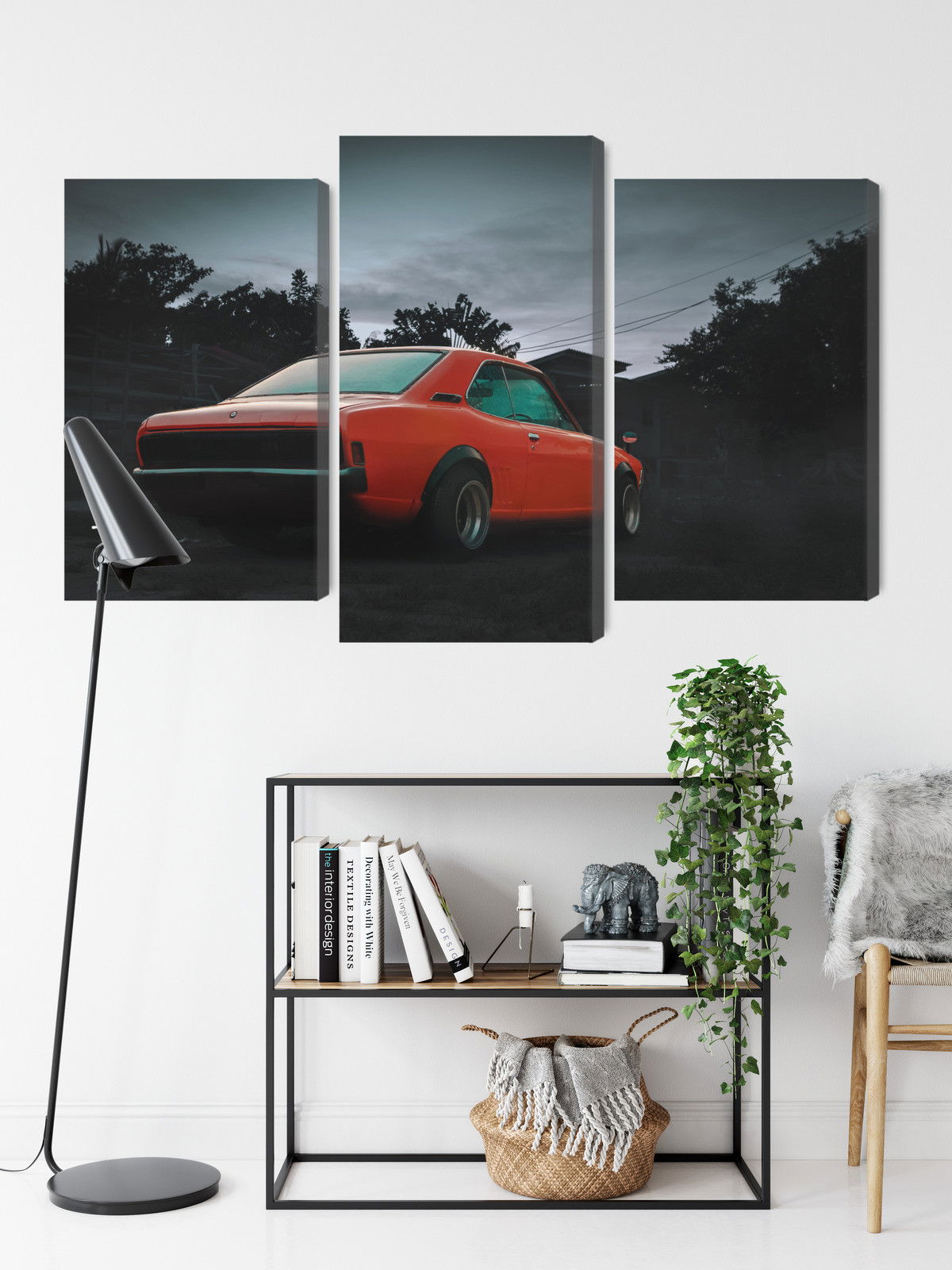 Ljuddämpande tavla – Orange retro car för lugnare rum och mjukare akustik