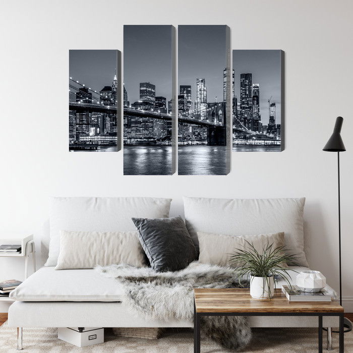 Ljuddämpande tavla – Panorama of New York at night för lugnare rum och mjukare akustik