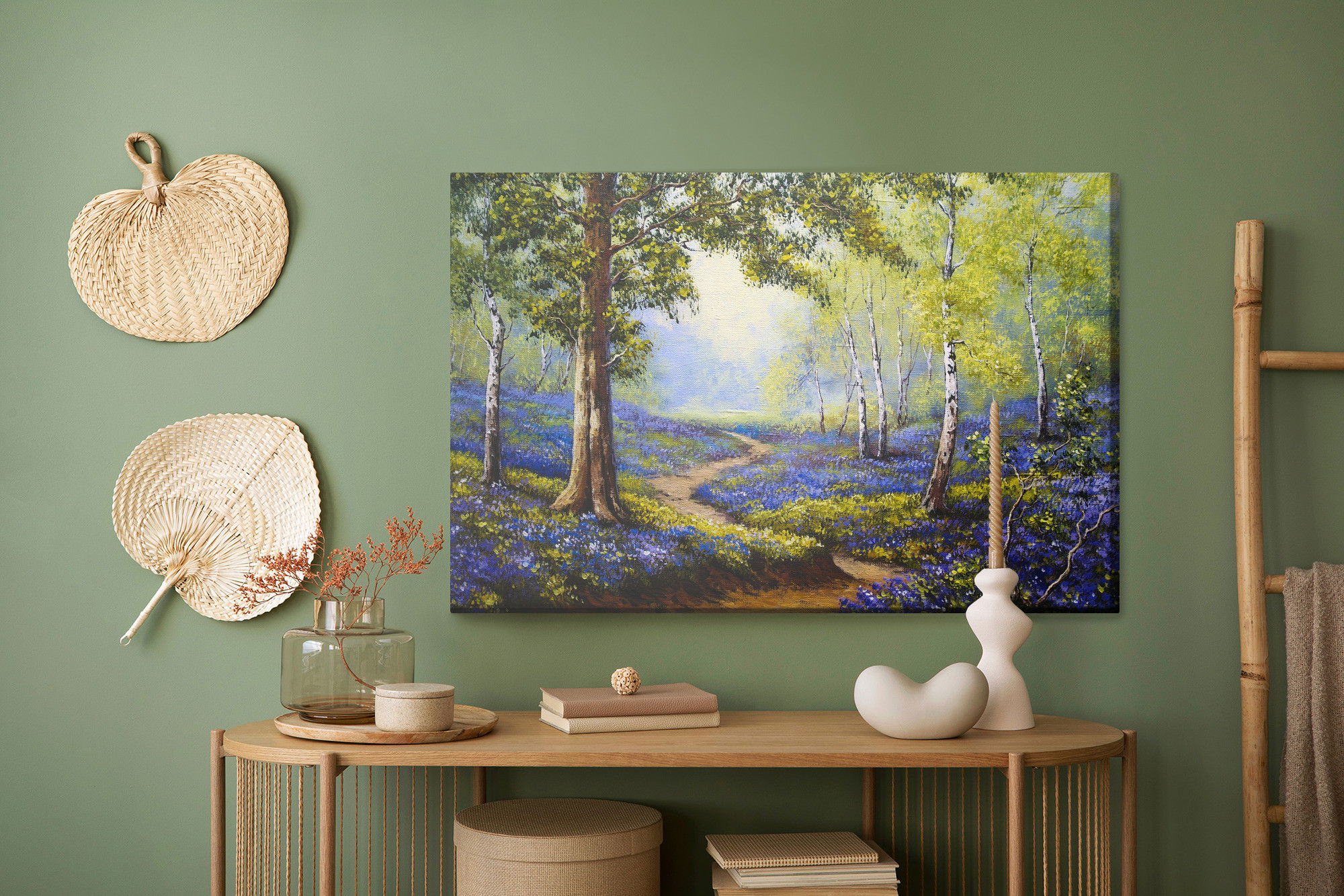 Ljuddämpande tavla – Path in the spring forest för lugnare rum och mjukare akustik