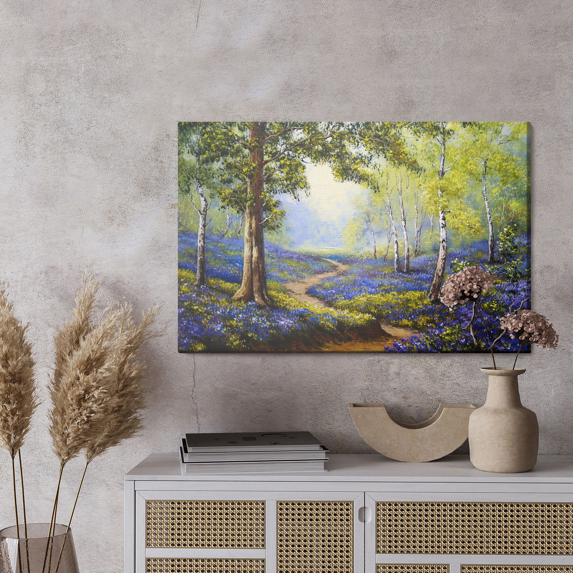 En ljuddämpande tavla Path in the spring forest är mer än en väggdekoration. En ljuddämpande tavla från SilentDirect fungerar som ett diskret men effektivt akustiskt komplement. Den mjukar upp ljudbilden, minskar eko och gör det mer behagligt att vistas i rummet under längre stunder. Samtidigt bidrar den till en mer genomarbetad helhet där både uttryck och funktion samspelar.