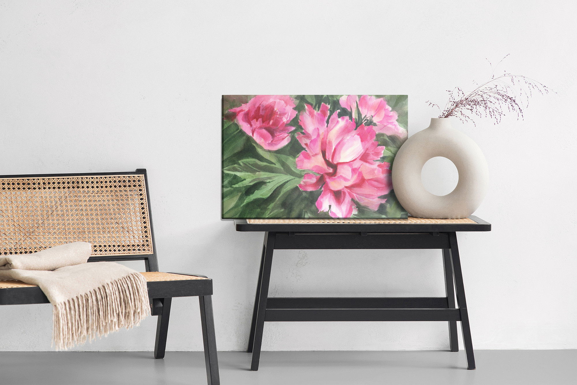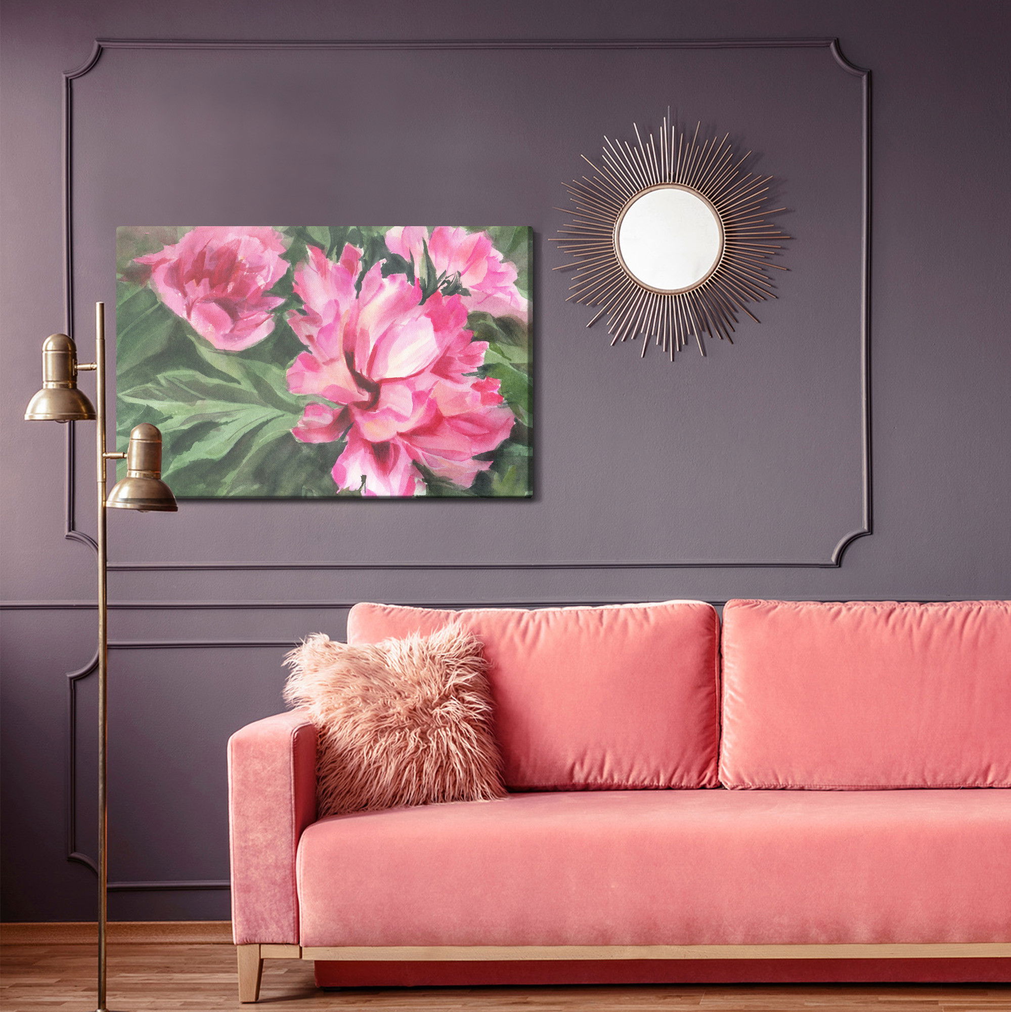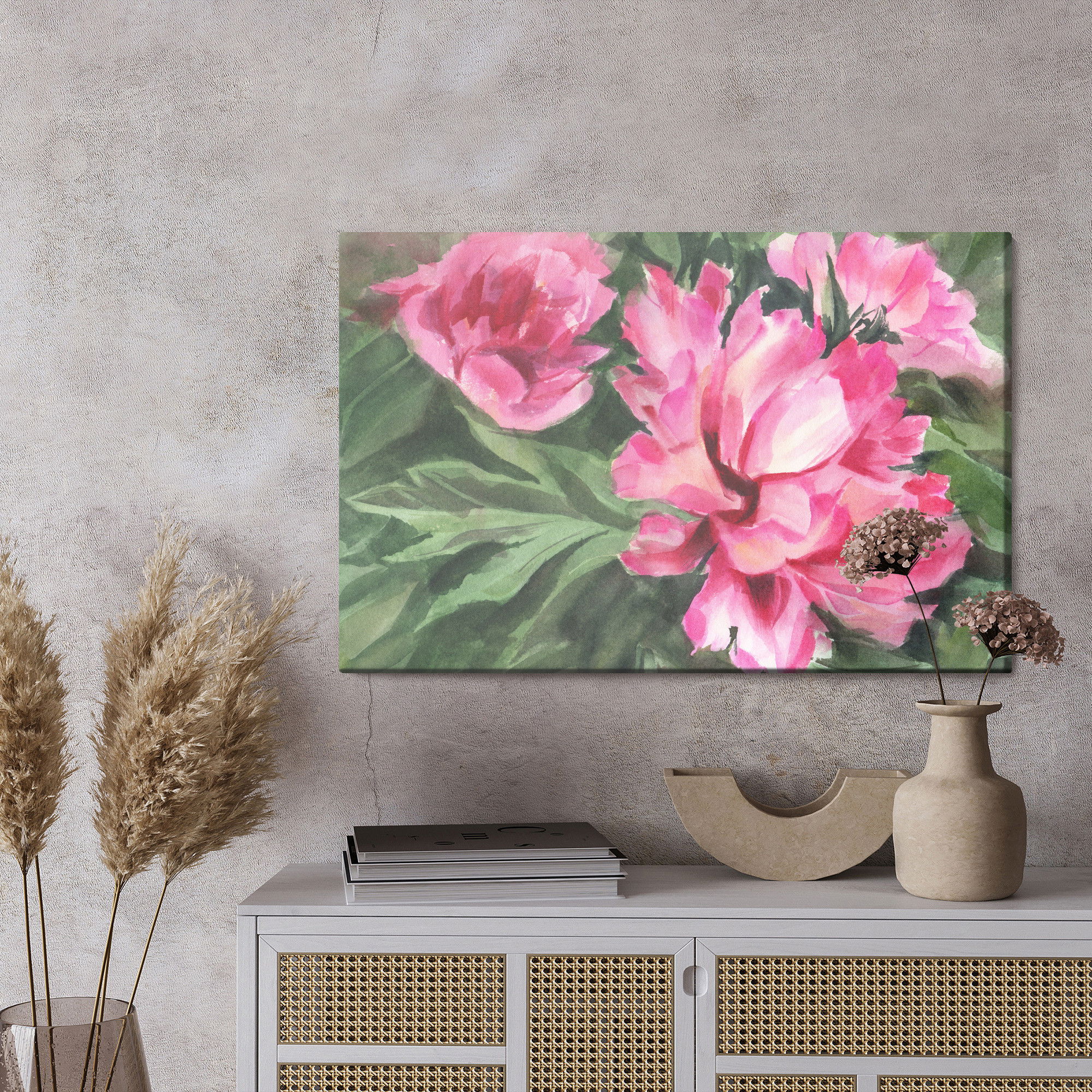 Ljuddämpande tavla – Peonies in leaves för lugnare rum och mjukare akustik