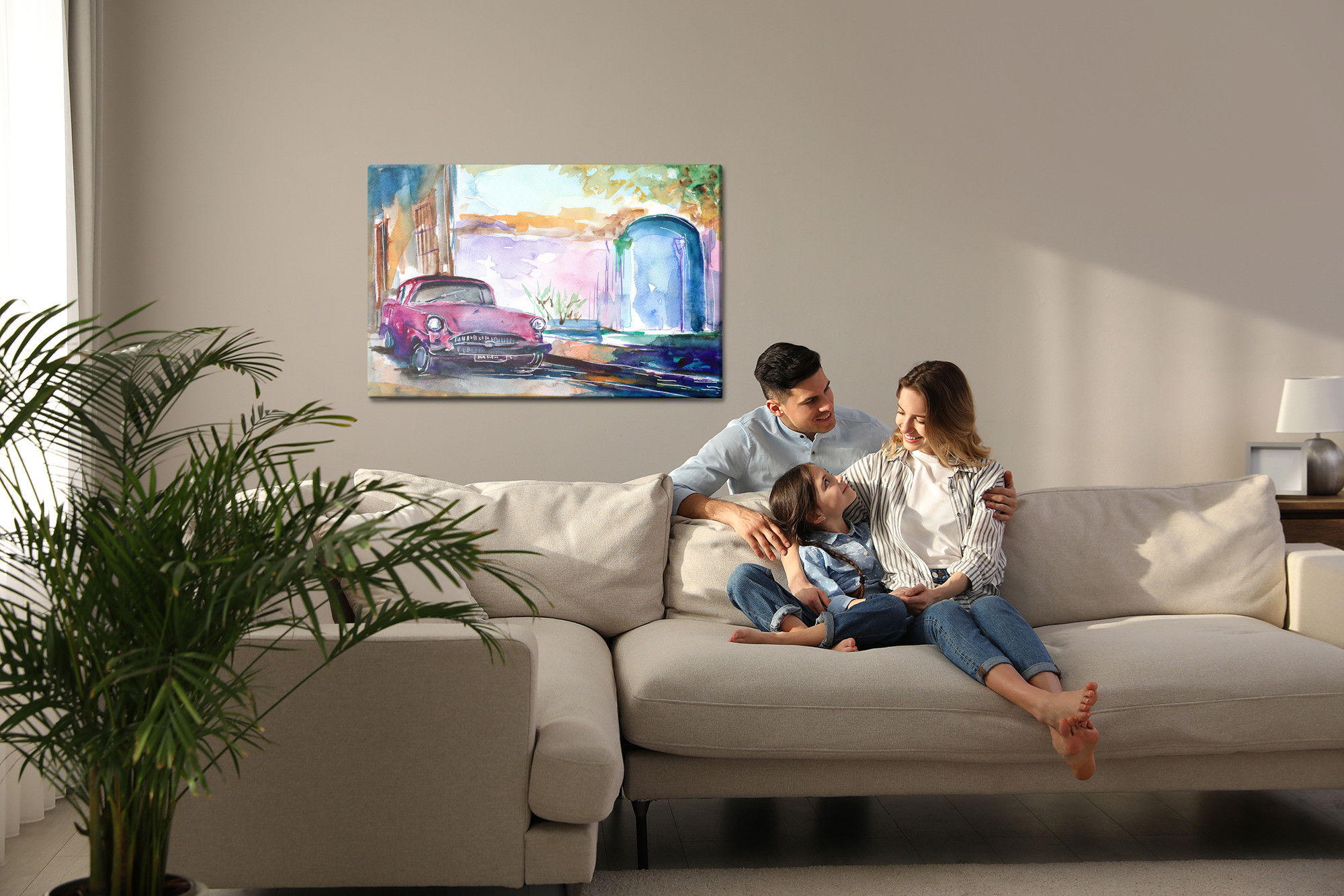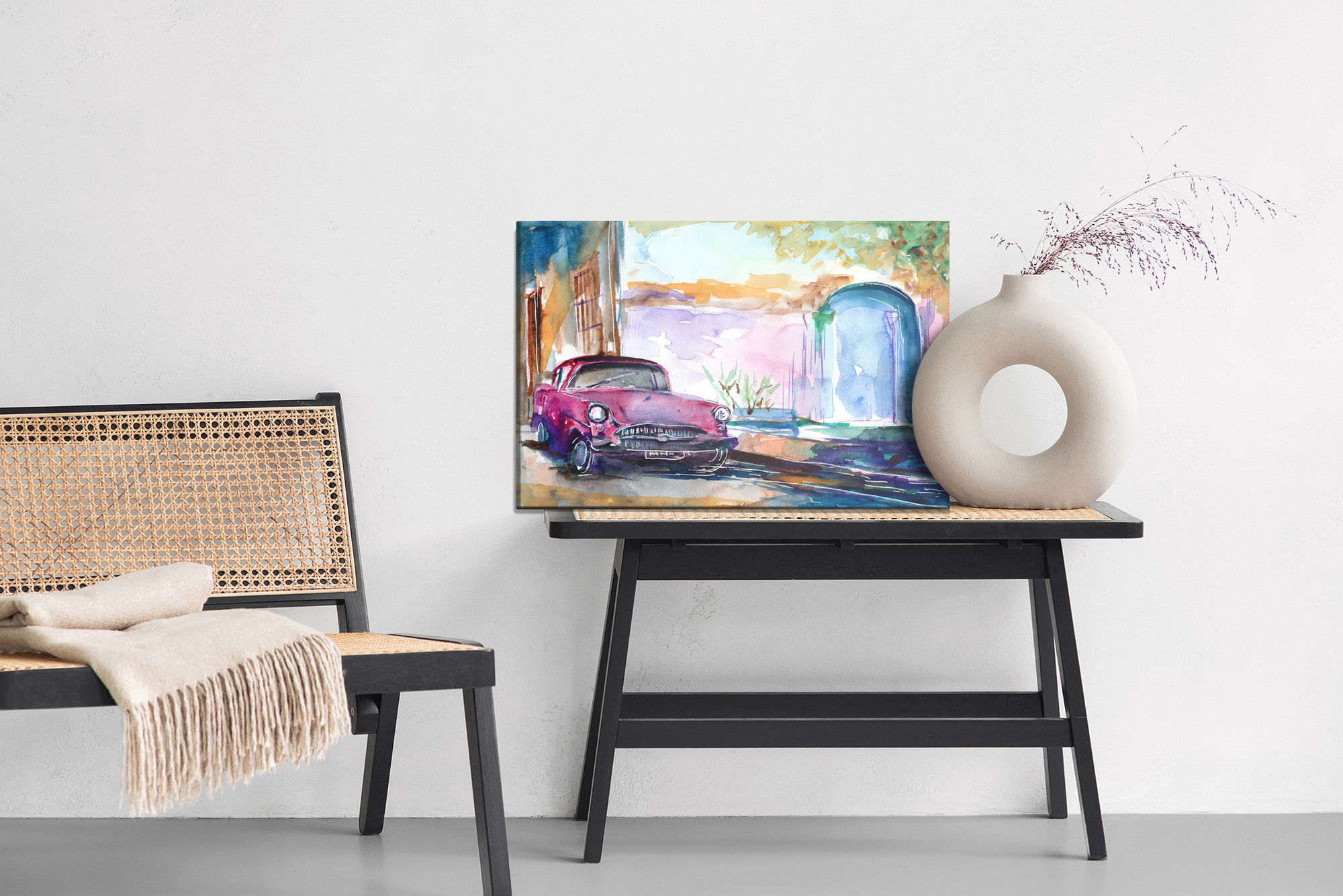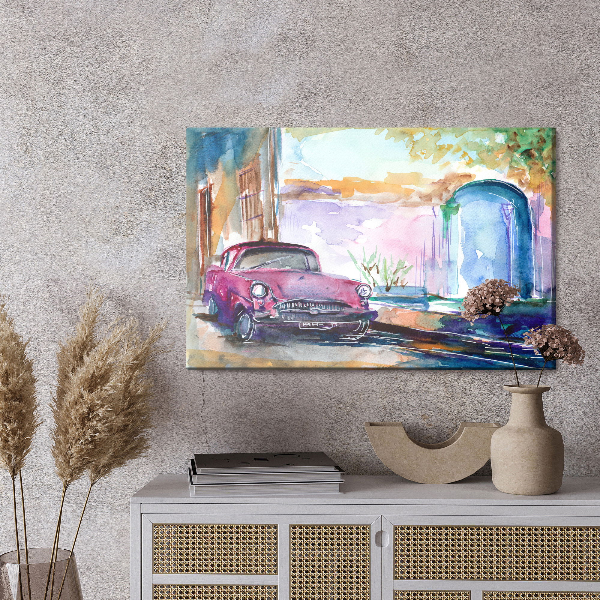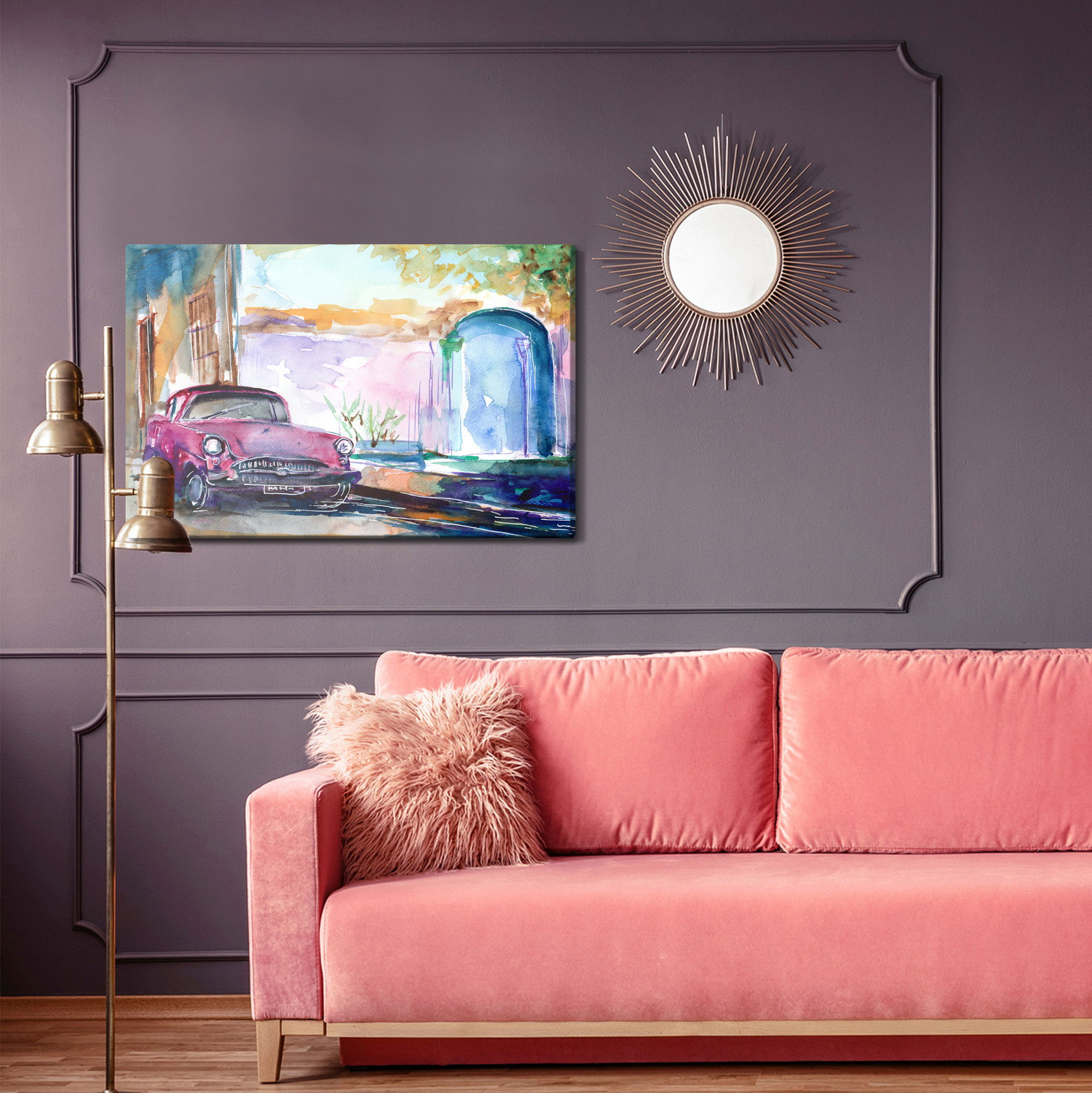 Ljuddämpande tavla – Pink car painted för lugnare rum och mjukare akustik