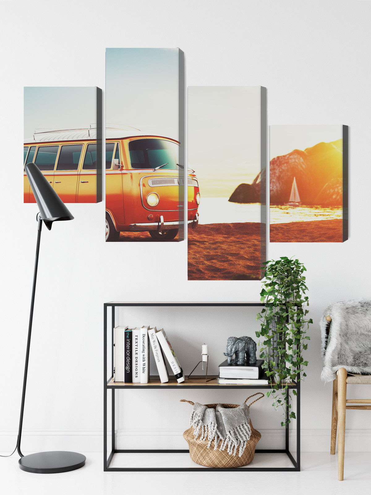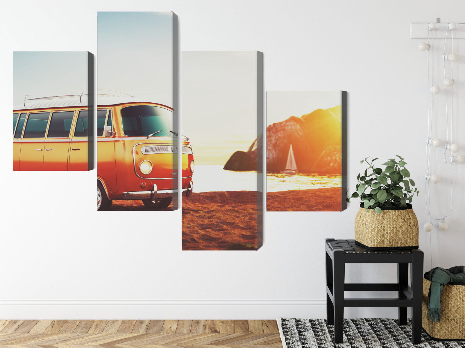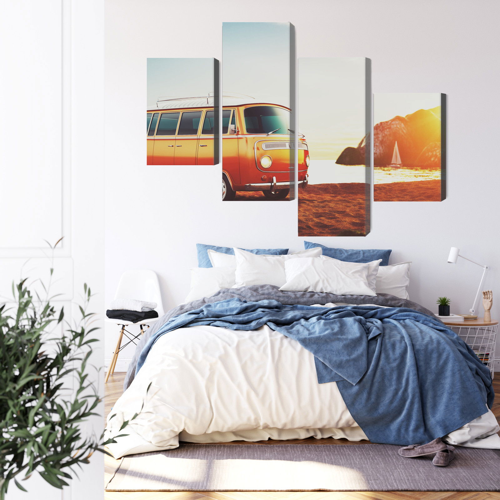 Ljuddämpande tavla – Retro car on the beach för lugnare rum och mjukare akustik