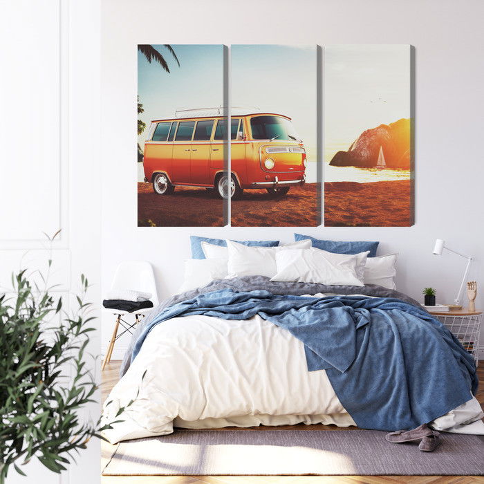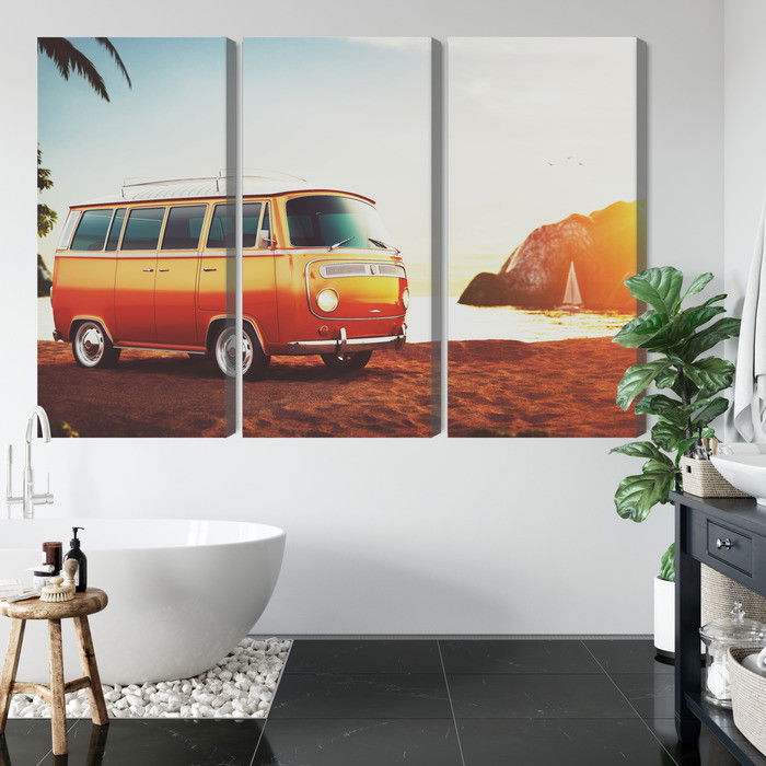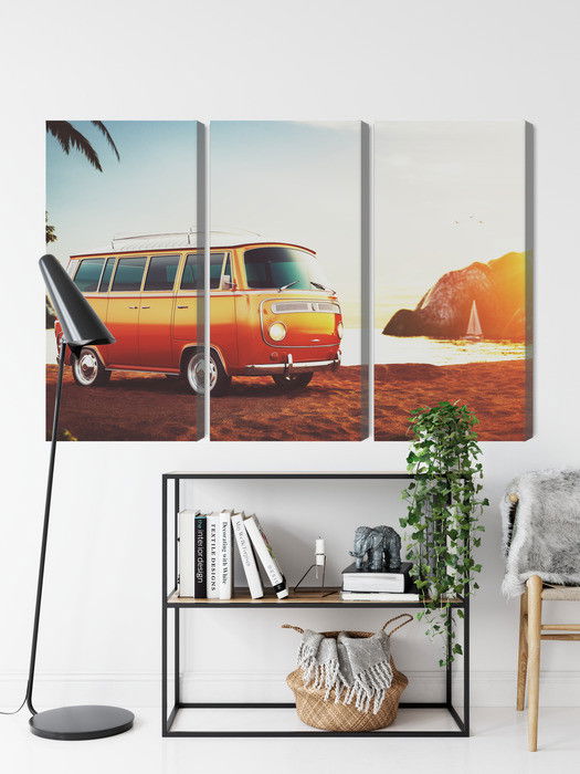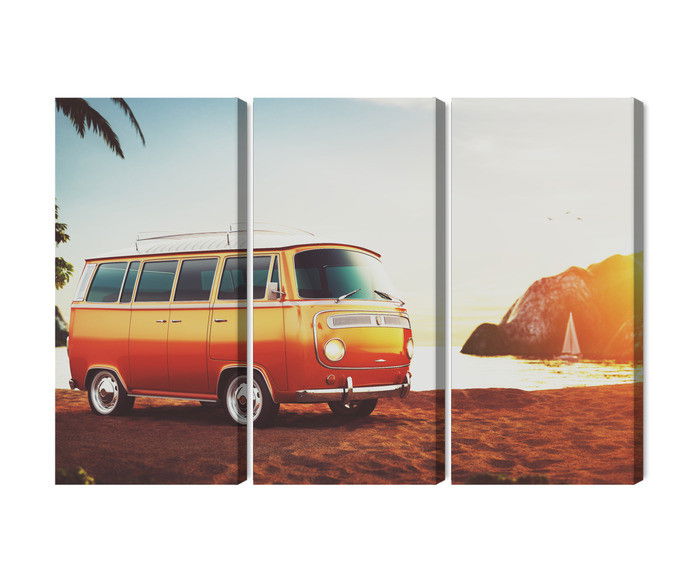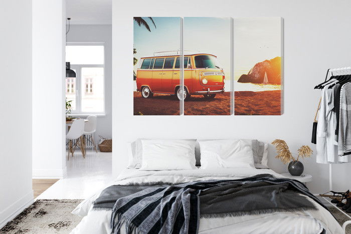 Ljuddämpande tavla – Retro car on the beach för lugnare rum och mjukare akustik
