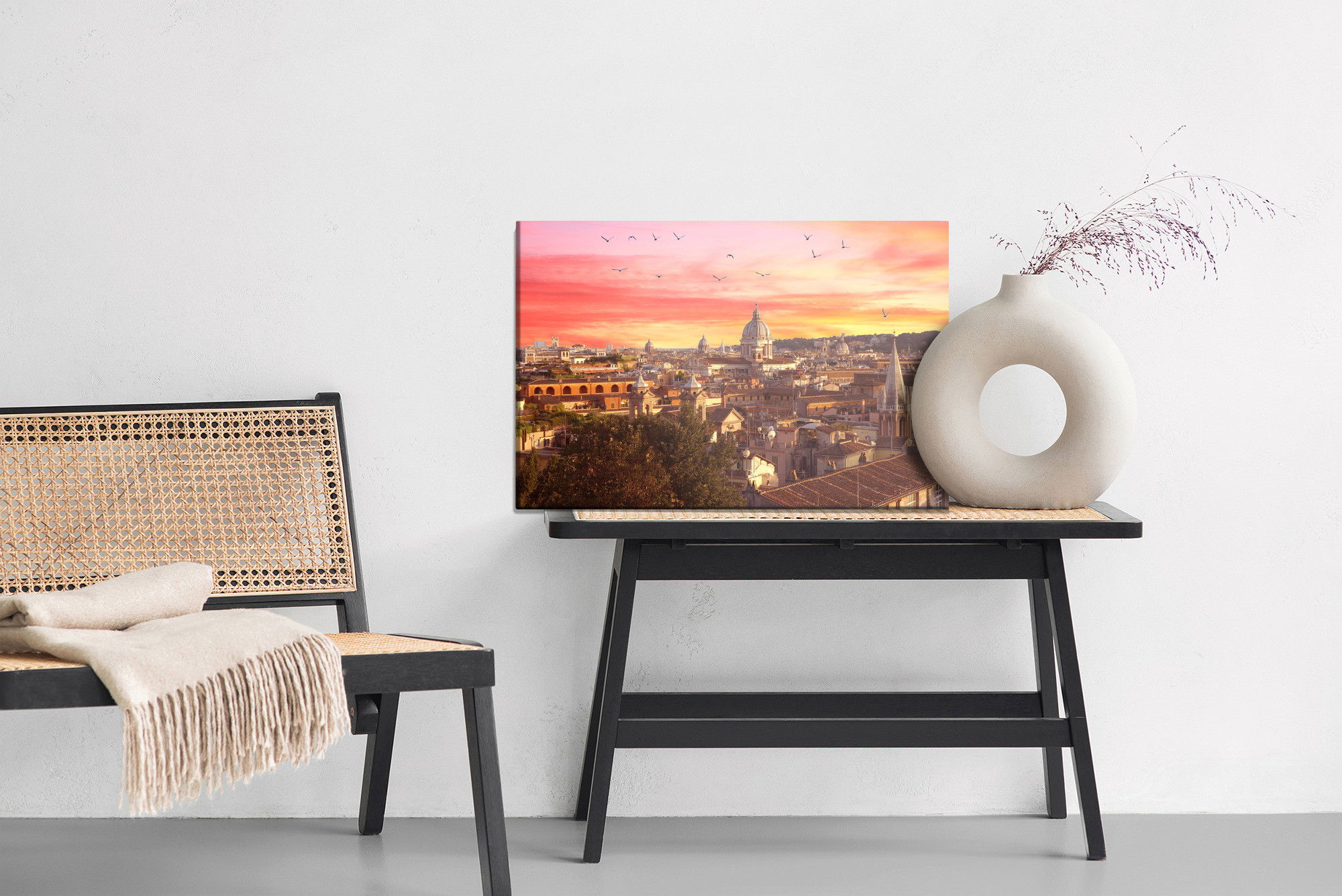 Motivet Roman 3d panorama återges med hög färgprecision och detaljrikedom tack vare HP Latex-teknologi. Trycket sker med vattenbaserade, luktfria och GREENGUARD Gold-certifierade bläck som ger en upplösning på upp till 300 DPI. Färgerna är UV-beständiga och behåller sin styrka även i ljusa rum, vilket gör tavlan lämplig för både hem- och offentliga miljöer.