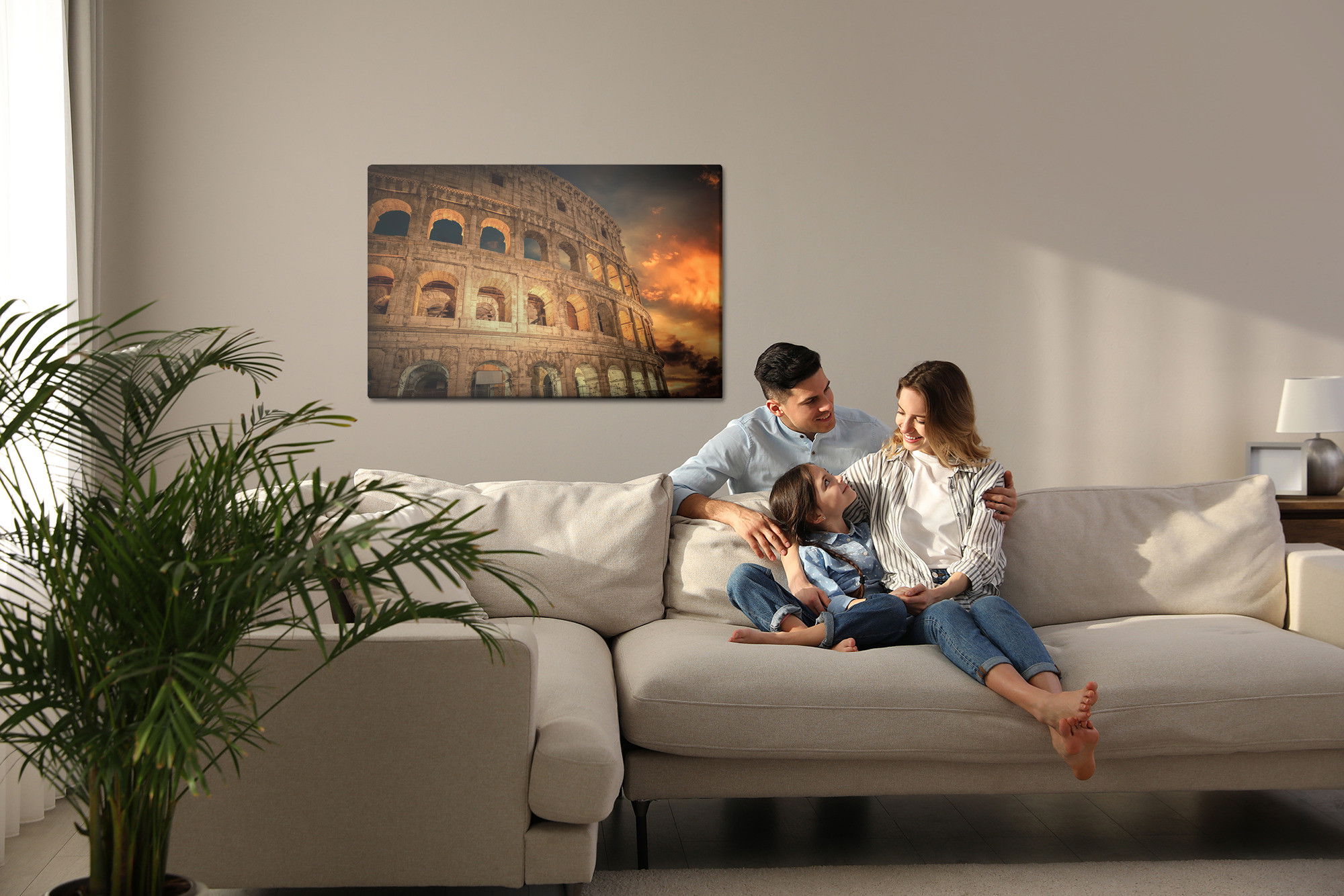 Motivet Roman Colosseum by night återges med hög färgprecision och detaljrikedom tack vare HP Latex-teknologi. Trycket sker med vattenbaserade, luktfria och GREENGUARD Gold-certifierade bläck som ger en upplösning på upp till 300 DPI. Färgerna är UV-beständiga och behåller sin styrka även i ljusa rum, vilket gör tavlan lämplig för både hem- och offentliga miljöer.