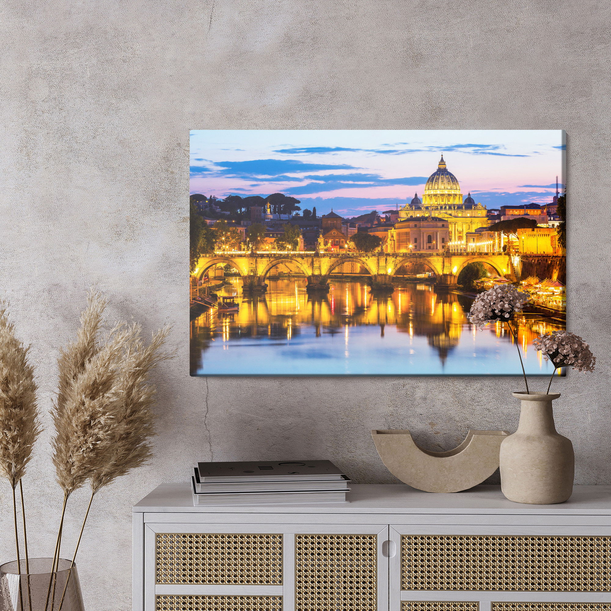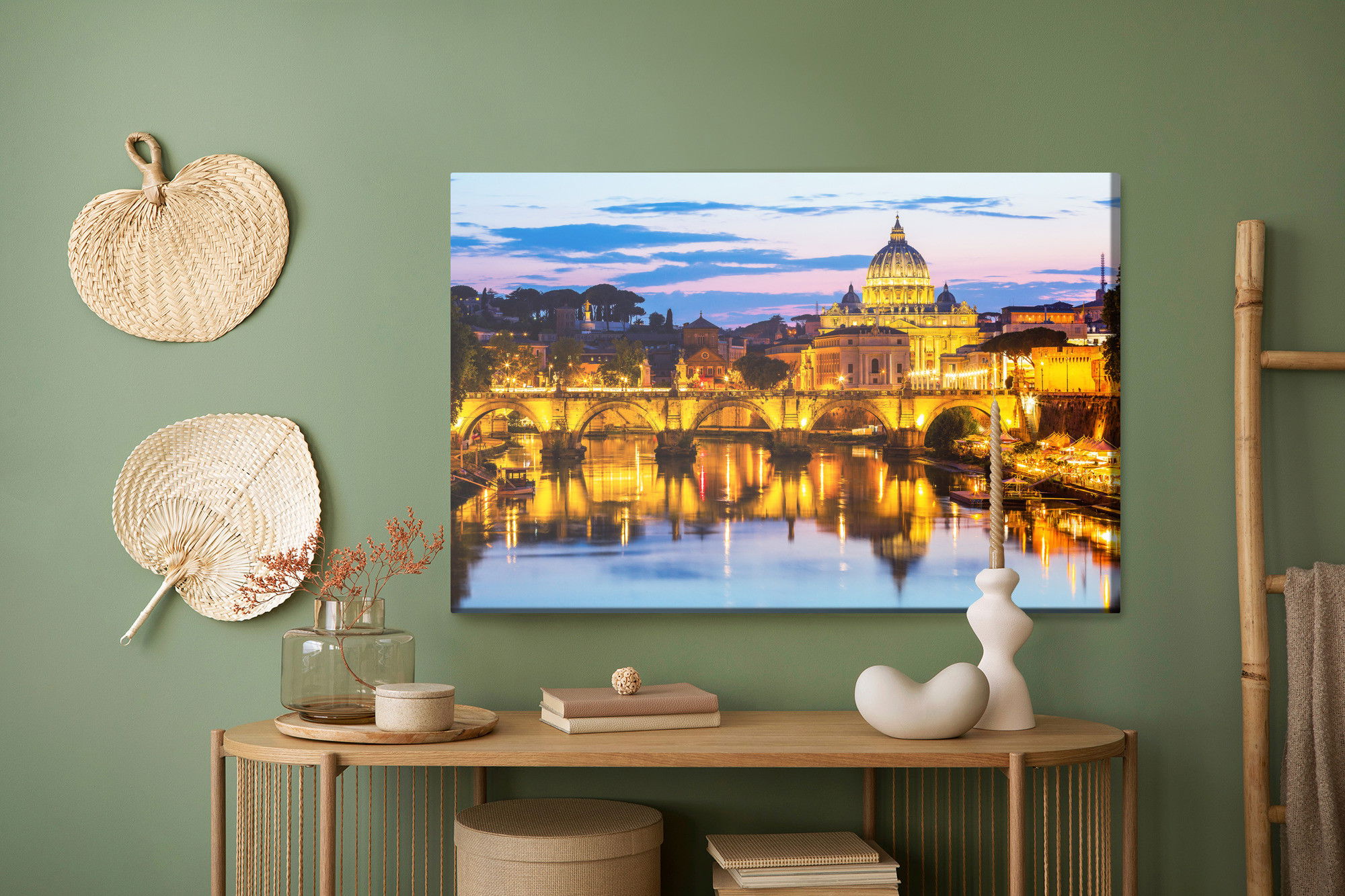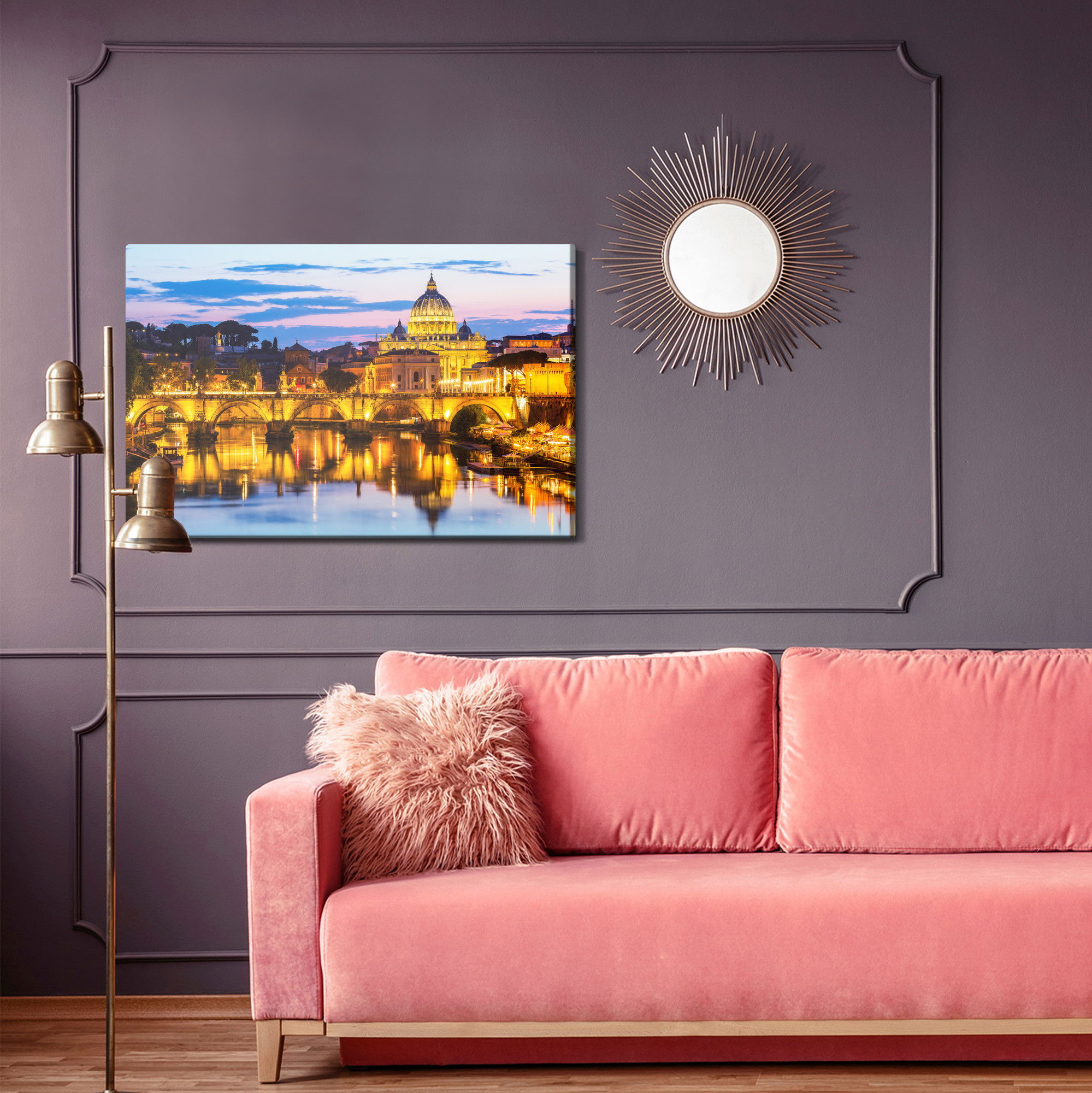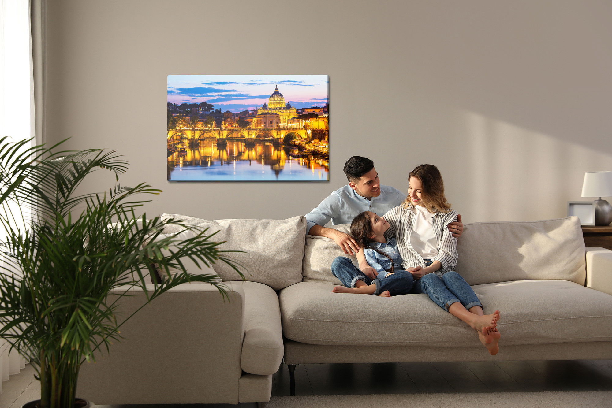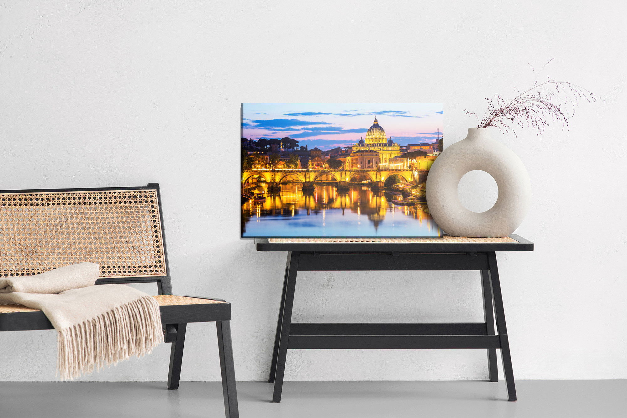 Motivet Rome by night återges med hög färgprecision och detaljrikedom tack vare HP Latex-teknologi. Trycket sker med vattenbaserade, luktfria och GREENGUARD Gold-certifierade bläck som ger en upplösning på upp till 300 DPI. Färgerna är UV-beständiga och behåller sin styrka även i ljusa rum, vilket gör tavlan lämplig för både hem- och offentliga miljöer.