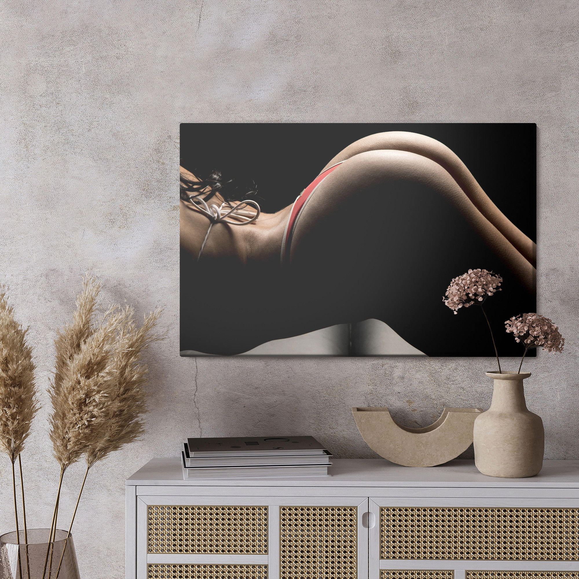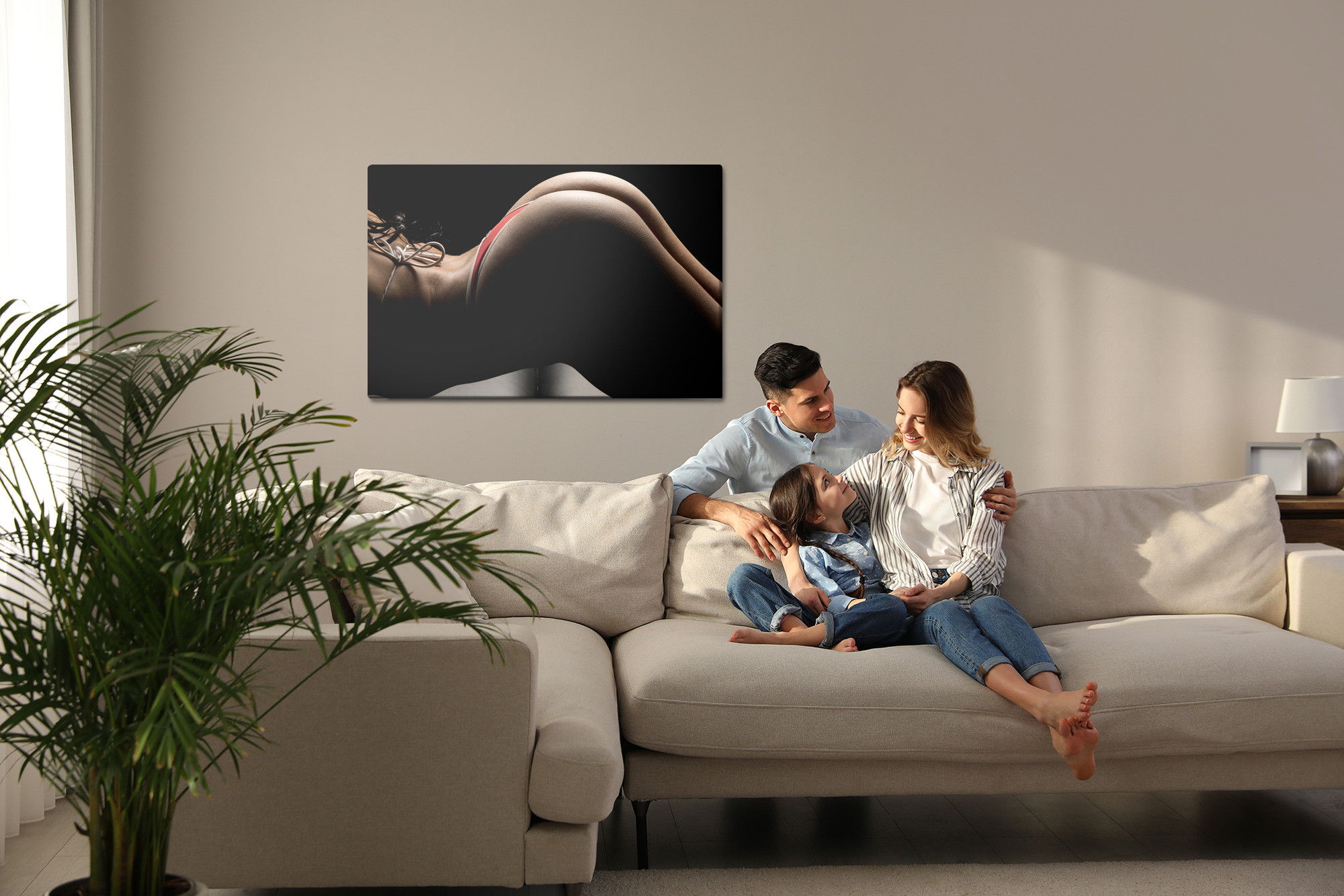 Motivet Sexy woman in a bikini återges med hög färgprecision och detaljrikedom tack vare HP Latex-teknologi. Trycket sker med vattenbaserade, luktfria och GREENGUARD Gold-certifierade bläck som ger en upplösning på upp till 300 DPI. Färgerna är UV-beständiga och behåller sin styrka även i ljusa rum, vilket gör tavlan lämplig för både hem- och offentliga miljöer.