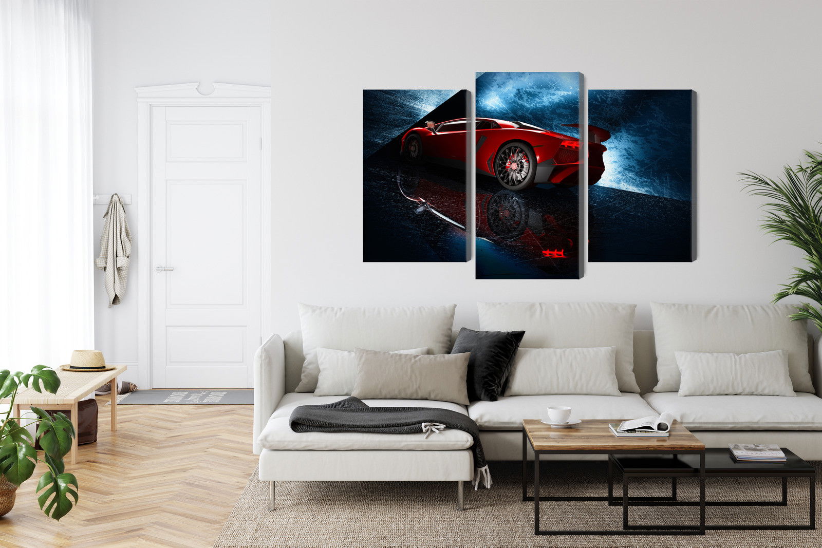 Ljuddämpande tavla – Sports car on an abstract för lugnare rum och mjukare akustik