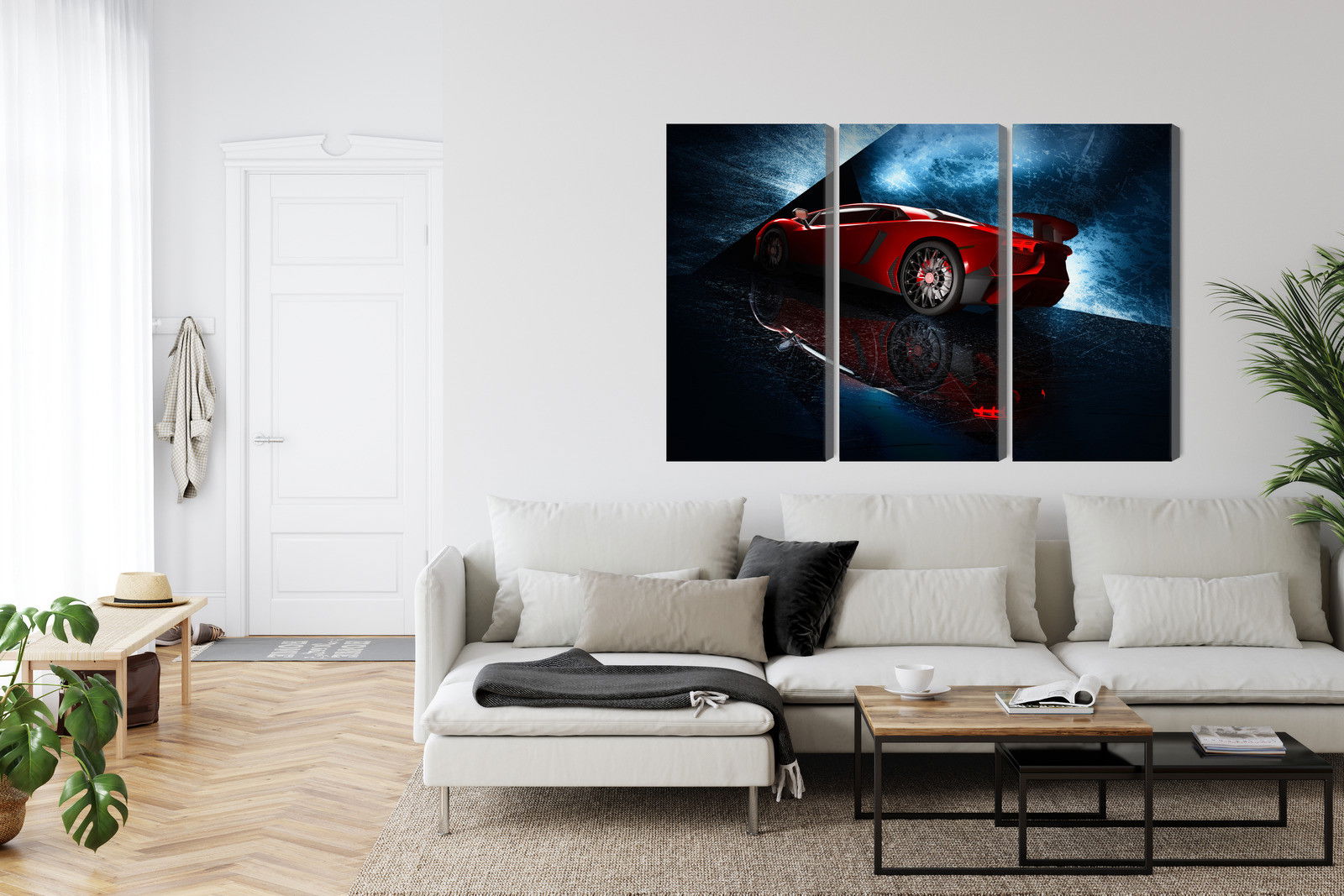 Ljuddämpande tavla – Sports car on an abstract för lugnare rum och mjukare akustik