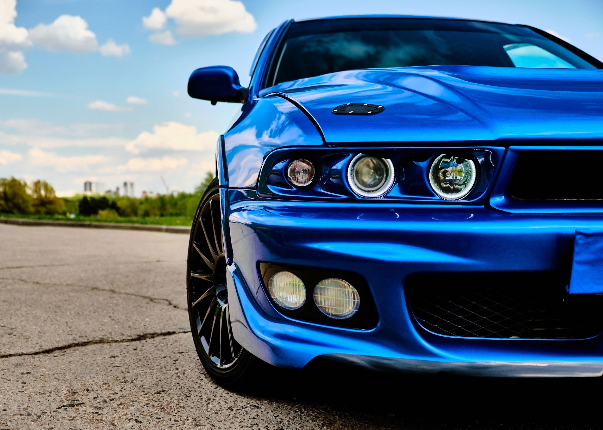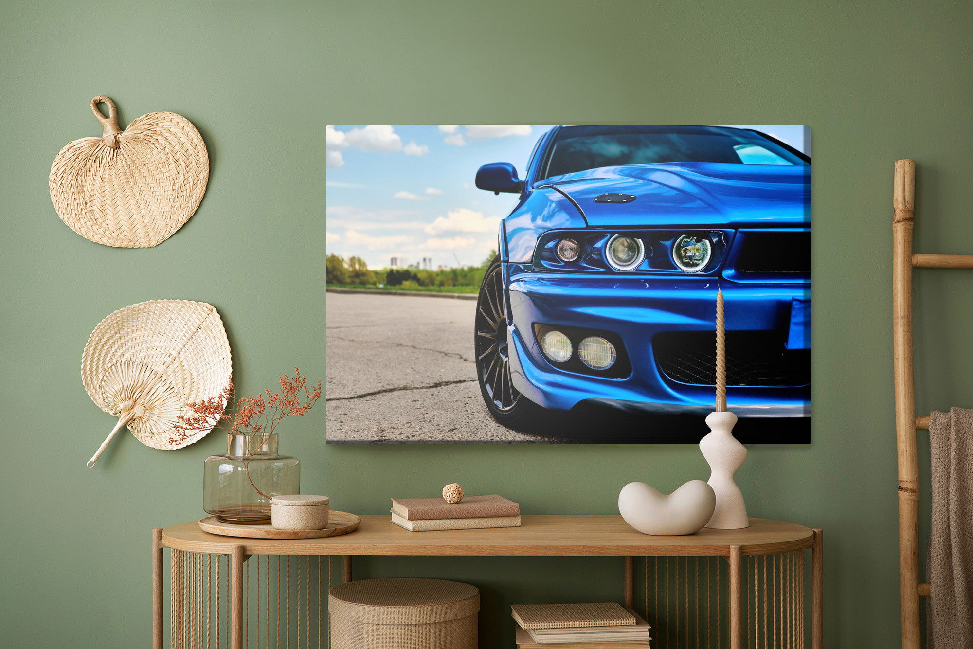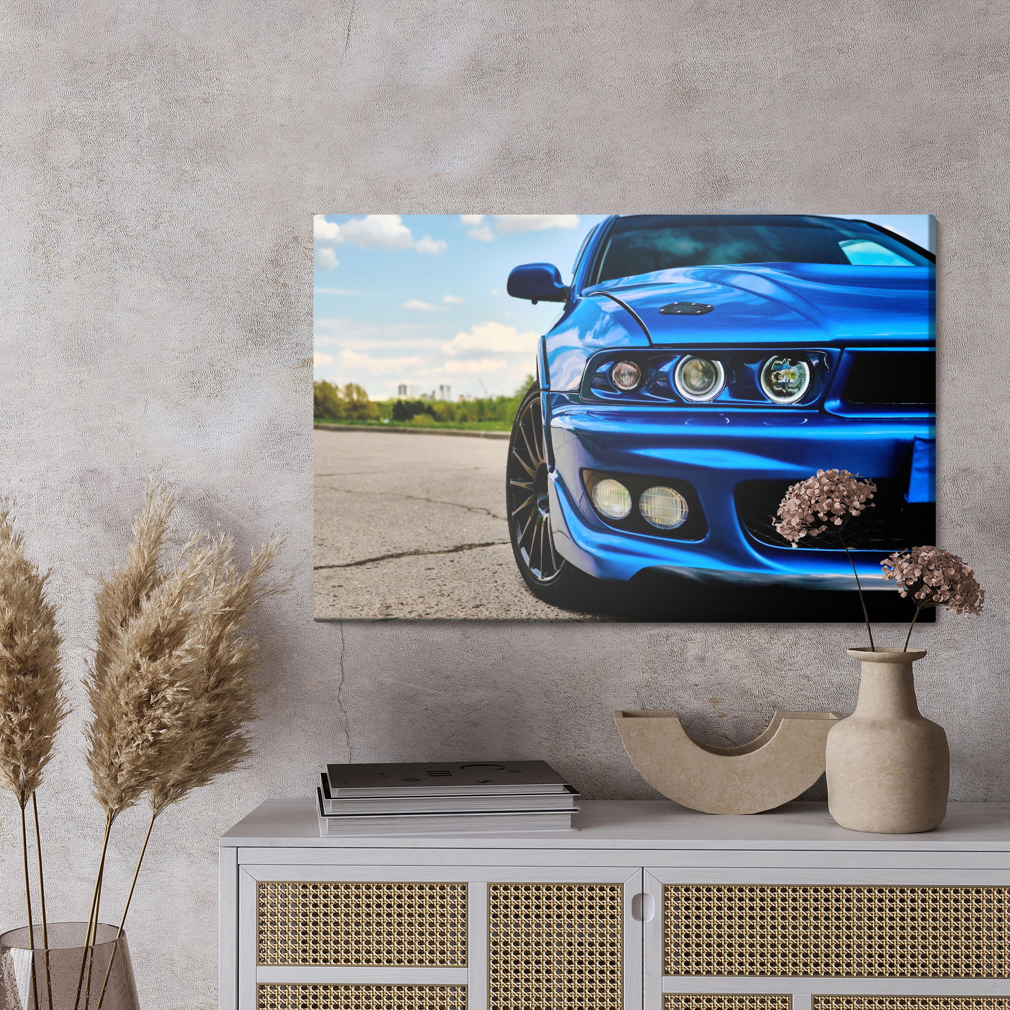 Ljuddämpande tavla – Sporty blue car and nature för lugnare rum och mjukare akustik
