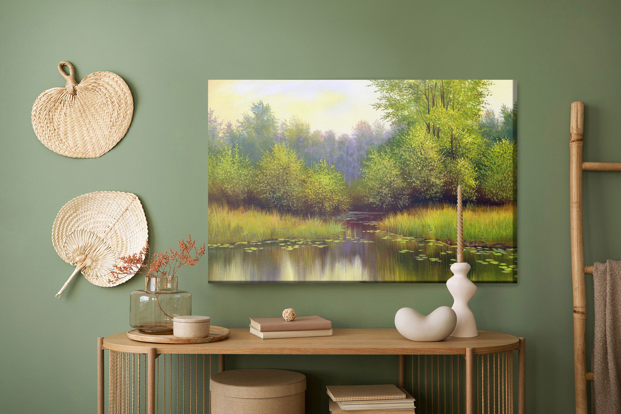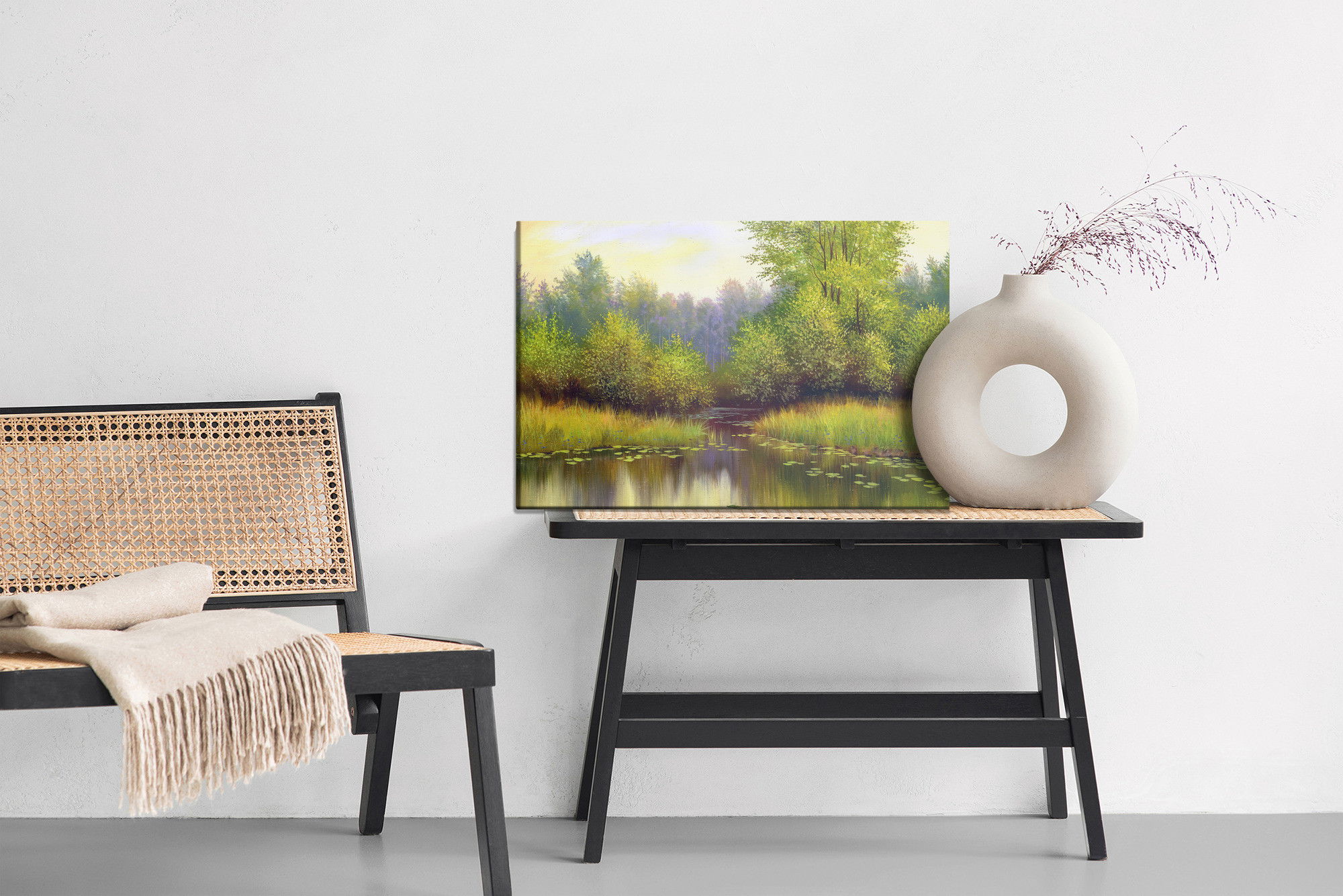 Ljuddämpande tavla – Spring landscape with a lake för lugnare rum och mjukare akustik