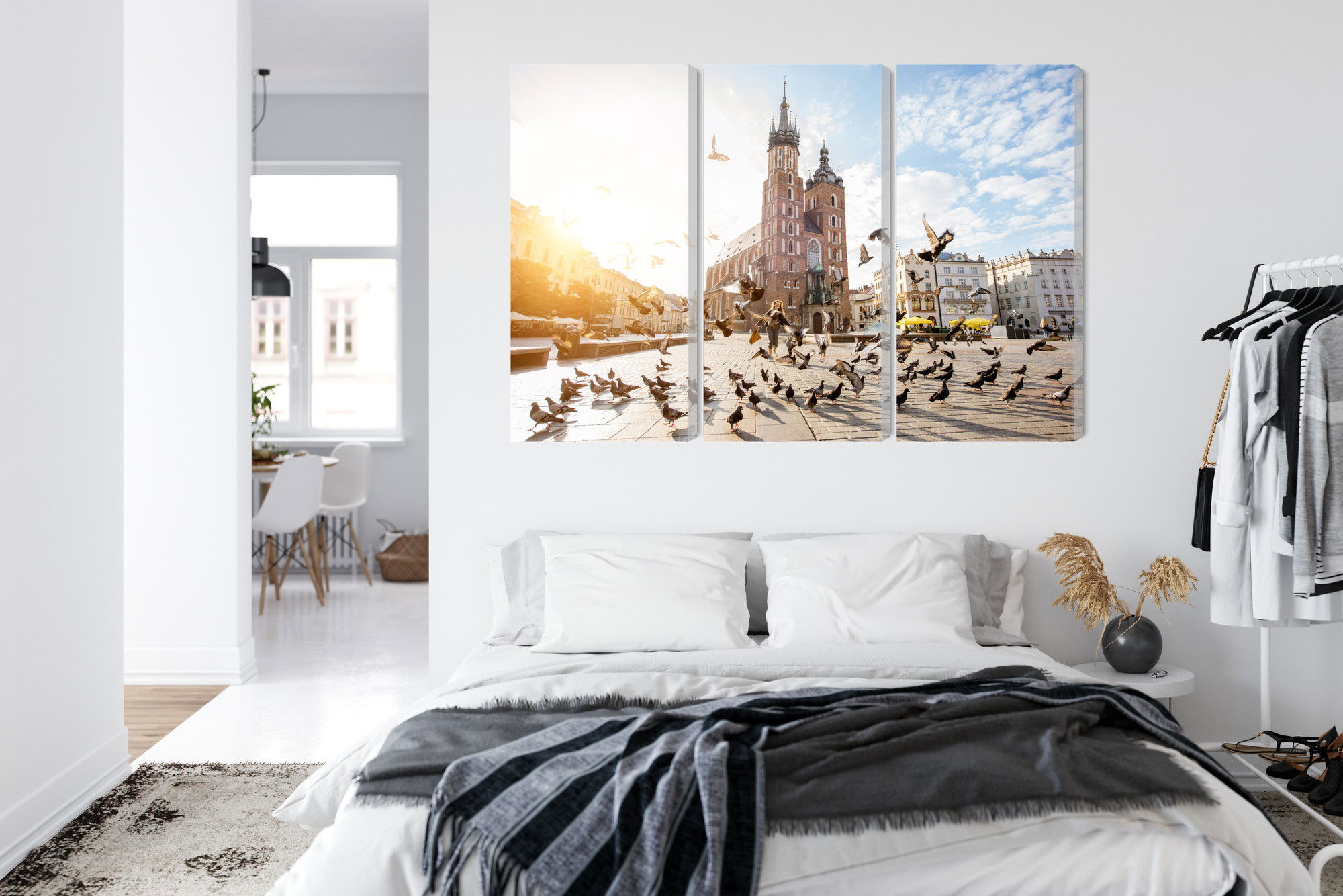 Varje tavla monteras på en massiv fururam. Format upp till 70×50 cm har en ram på 15 mm, medan format från 90×60 cm och uppåt har en ram på 20 mm. Den exakta dukspänningen gör att tavlan håller sin form över tid. Motivet St. mary's basilica trycks runt hela ramen vilket ger ett stilrent galleriuttryck där tavlan är lika vacker från sidan som framifrån. Kombinationen av rak dukspänning, rena linjer och korrekt tryck ger en professionell finish.