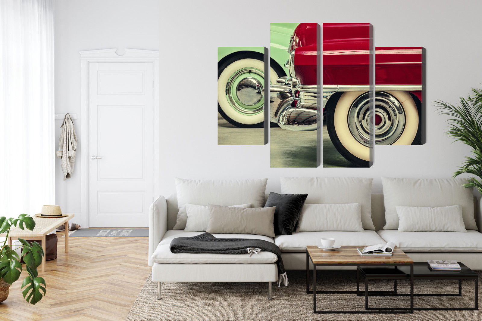 Ljuddämpande tavla – Stylish vintage car wheels för lugnare rum och mjukare akustik