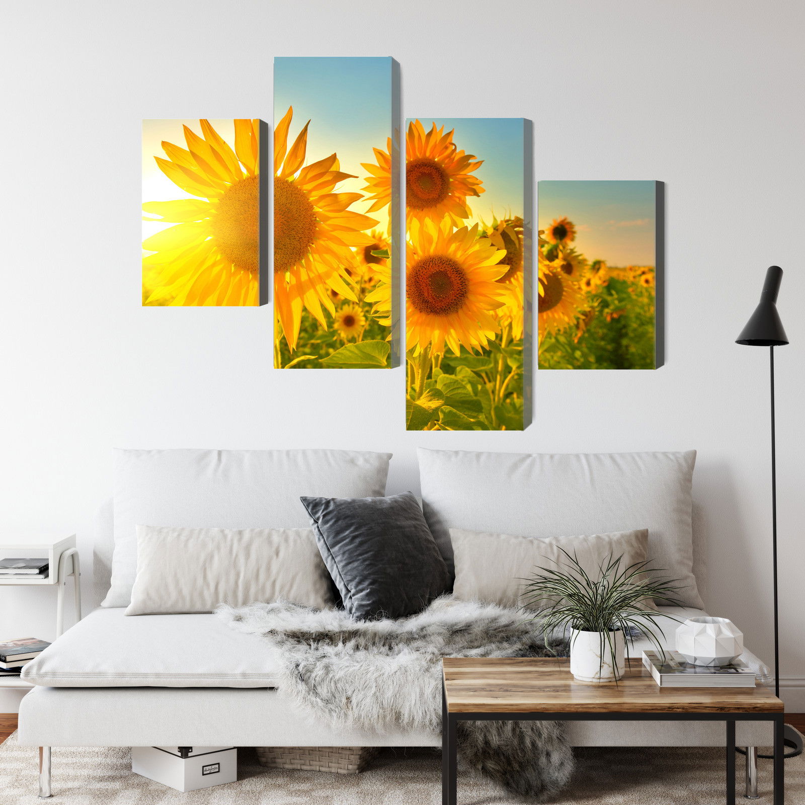 Ljuddämpande tavla – Sunflower field at sunset 3d för lugnare rum och mjukare akustik