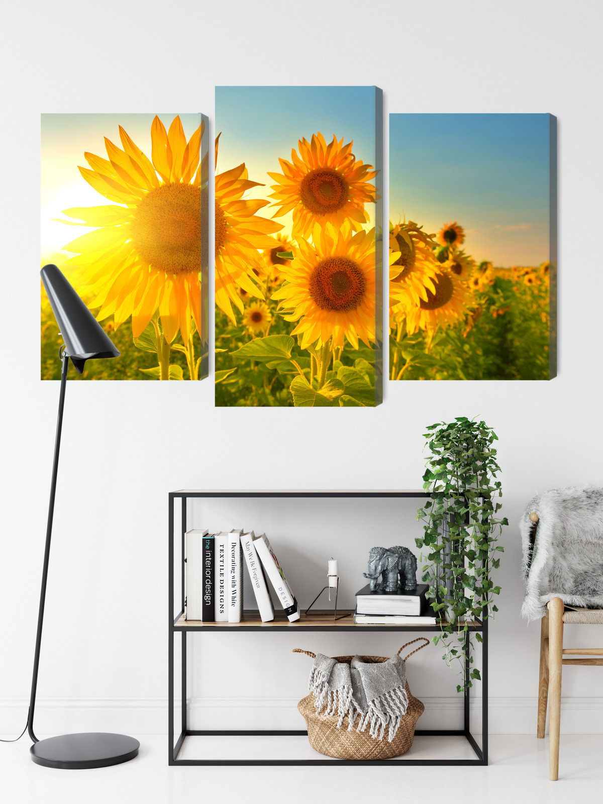 Ljuddämpande tavla – Sunflower field at sunset 3d för lugnare rum och mjukare akustik