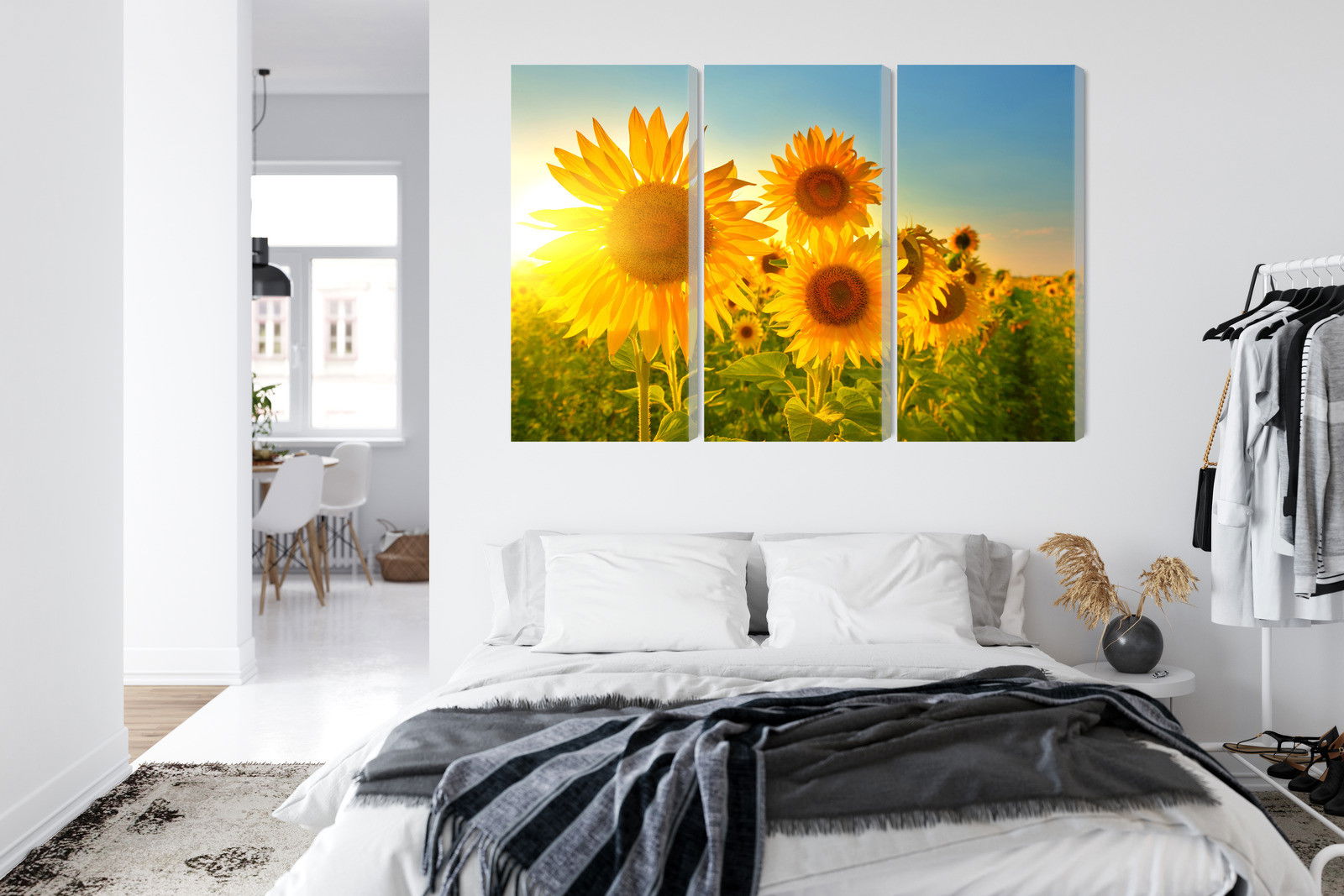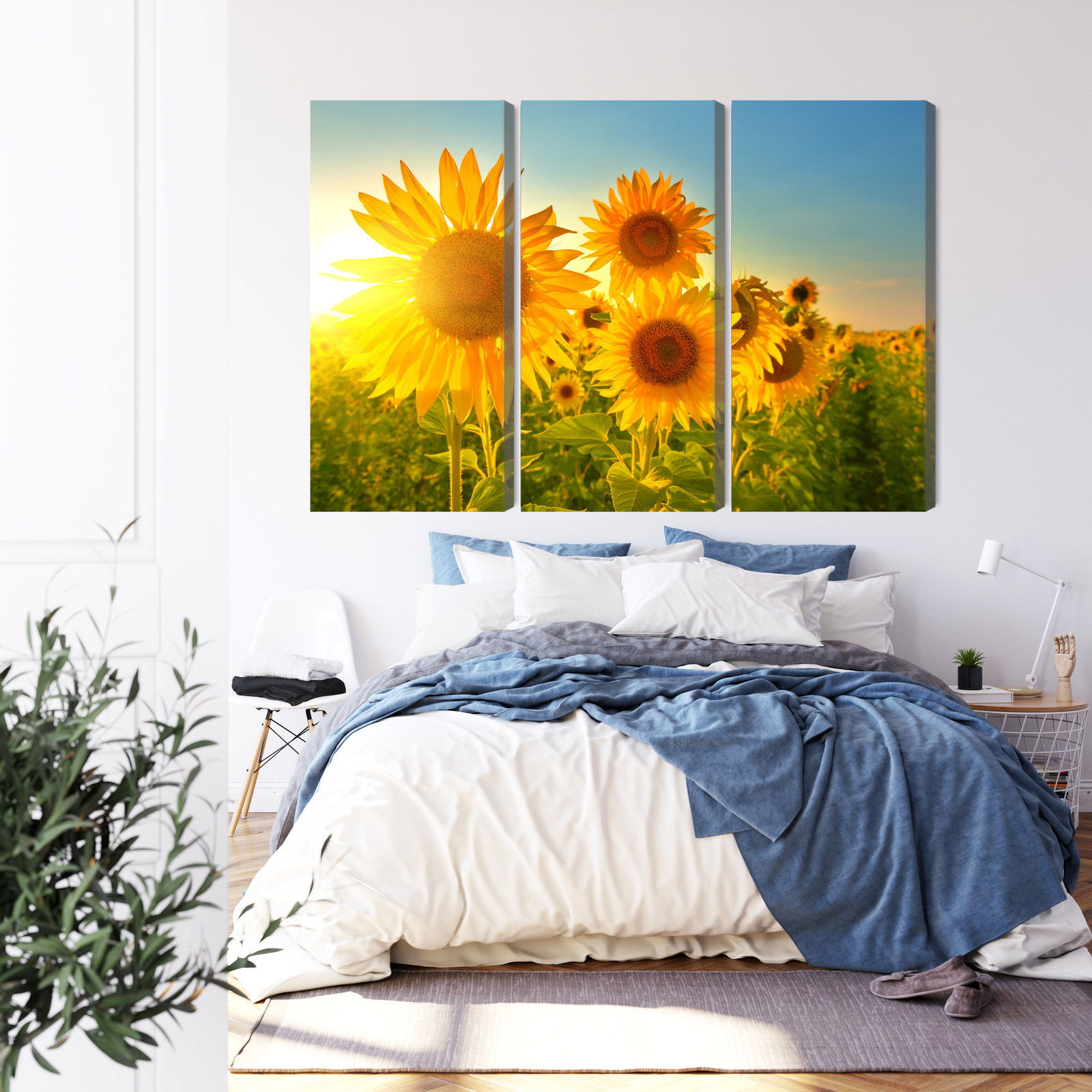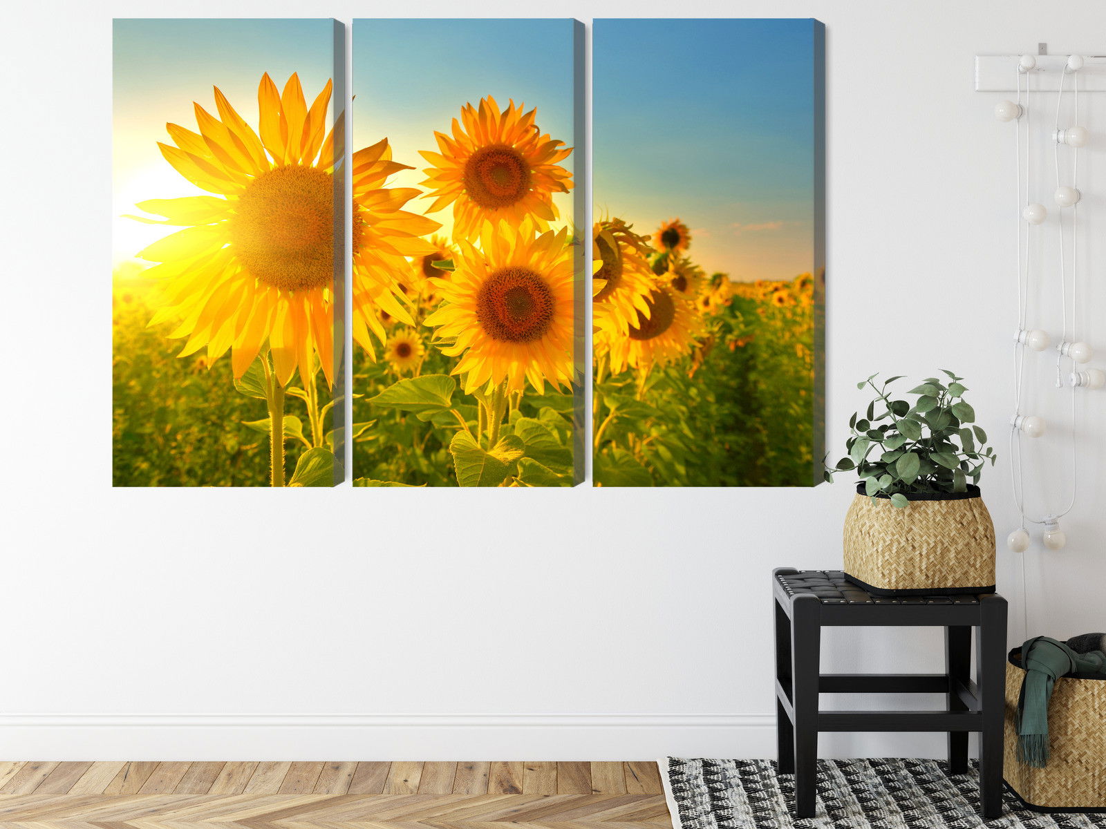 Ljuddämpande tavla – Sunflower field at sunset 3d för lugnare rum och mjukare akustik