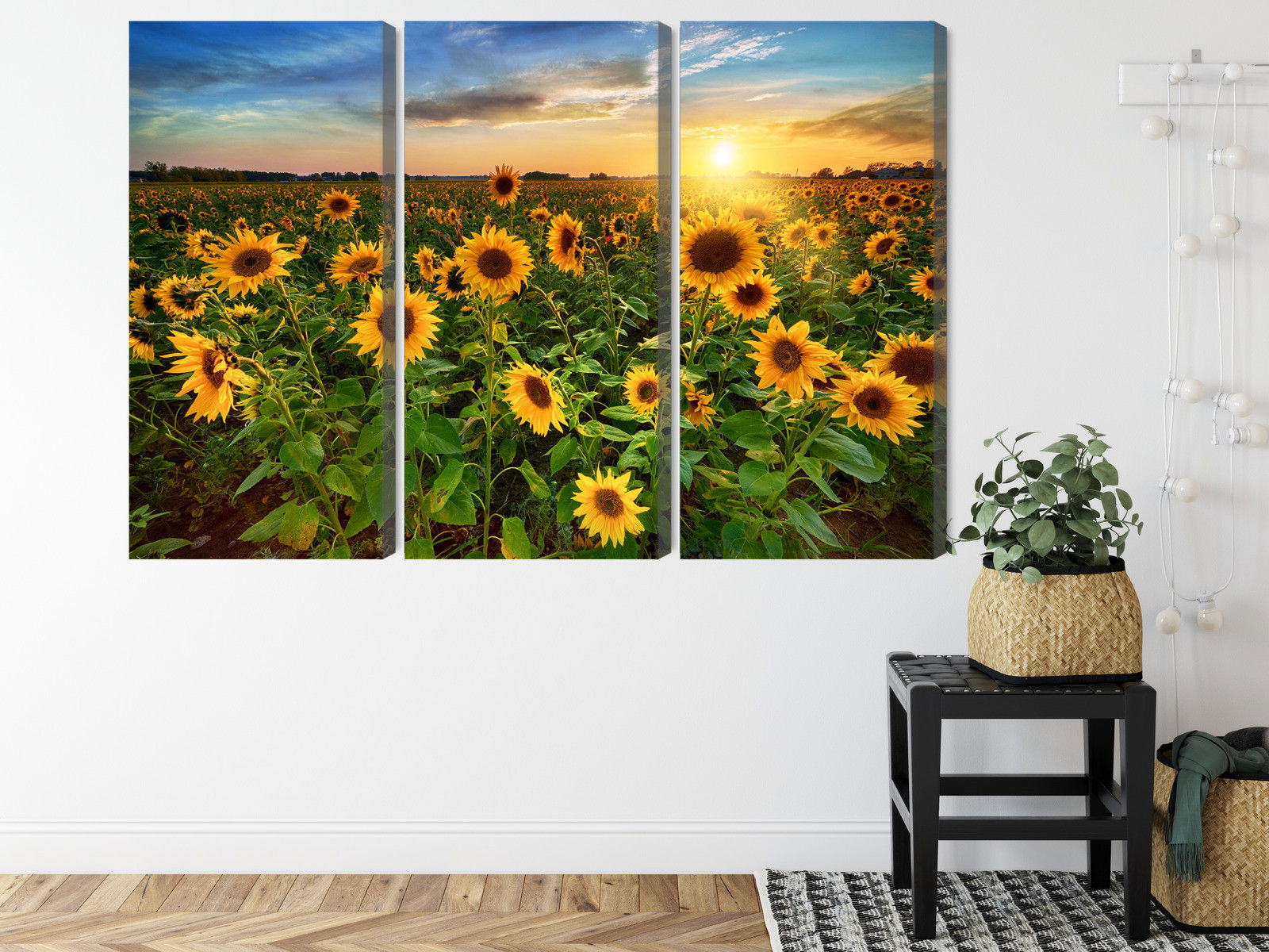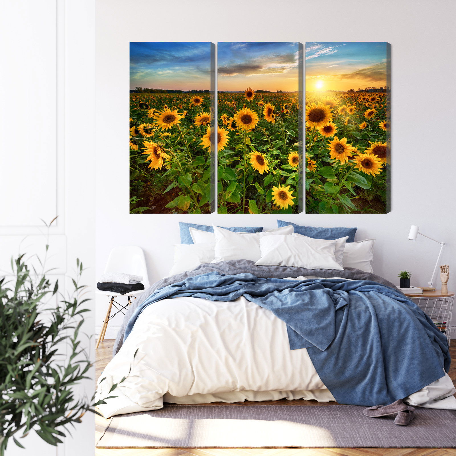 Ljuddämpande tavla – Sunflower field at sunset 3d för lugnare rum och mjukare akustik