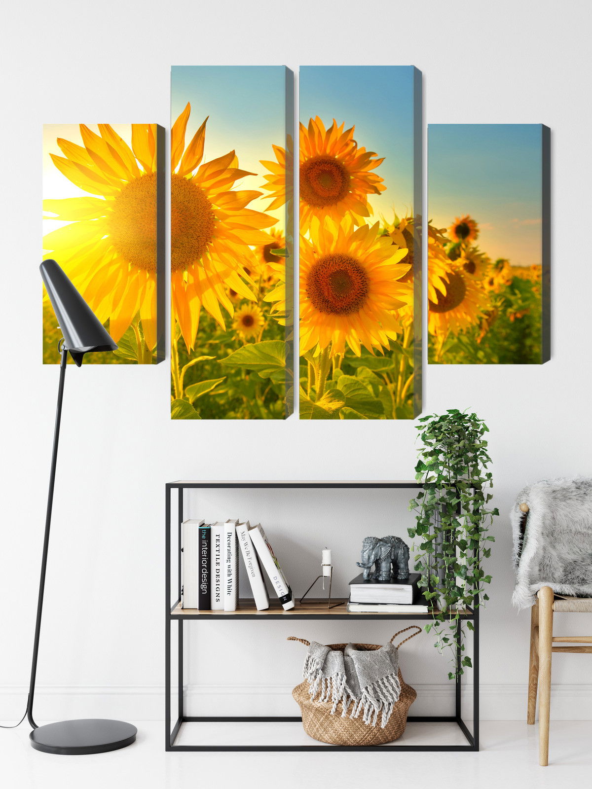 Ljuddämpande tavla – Sunflower field at sunset 3d för lugnare rum och mjukare akustik