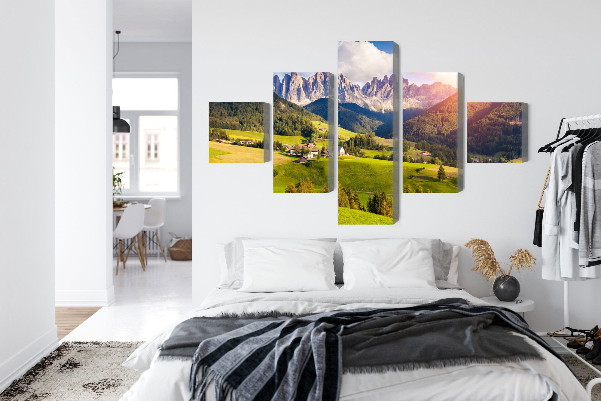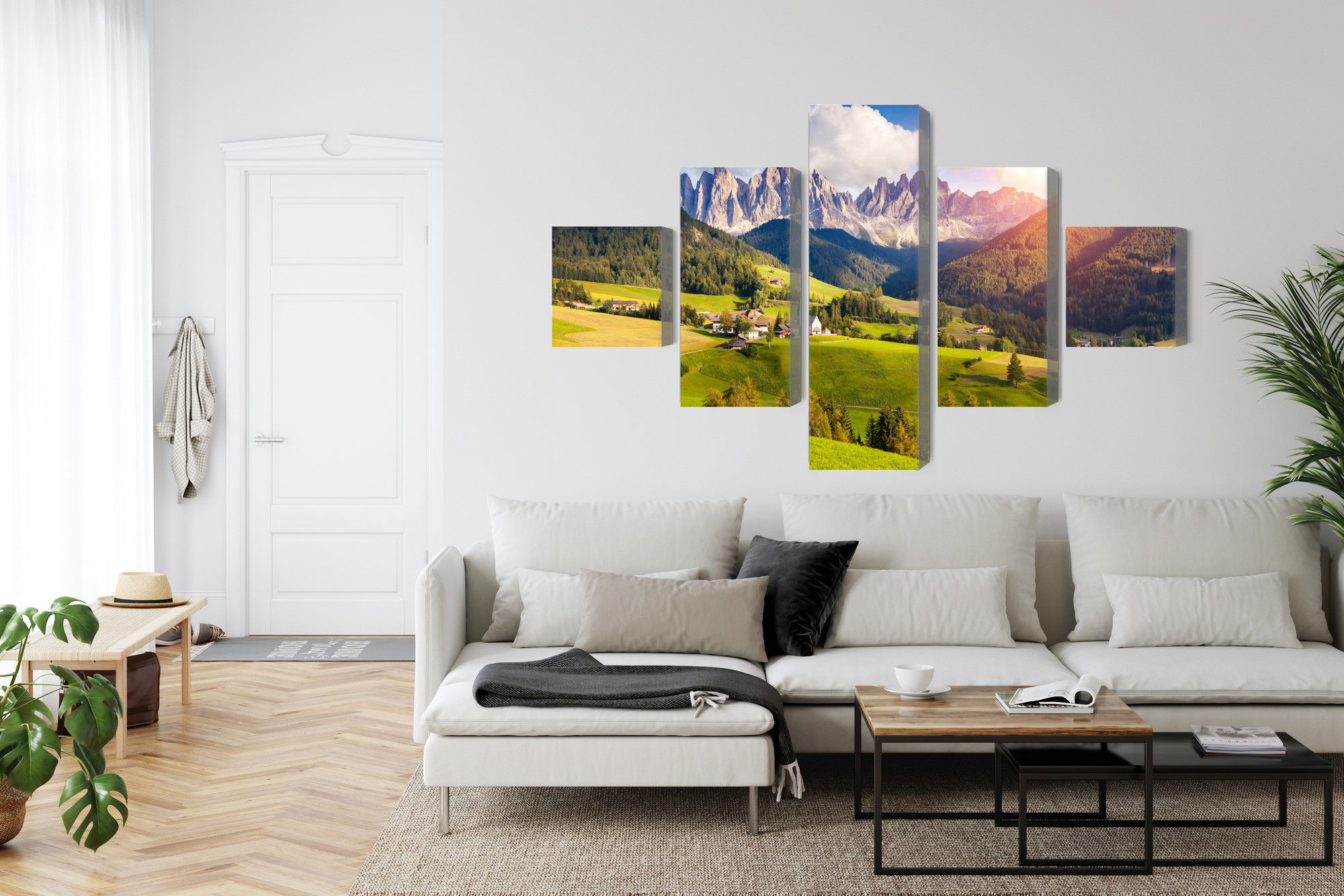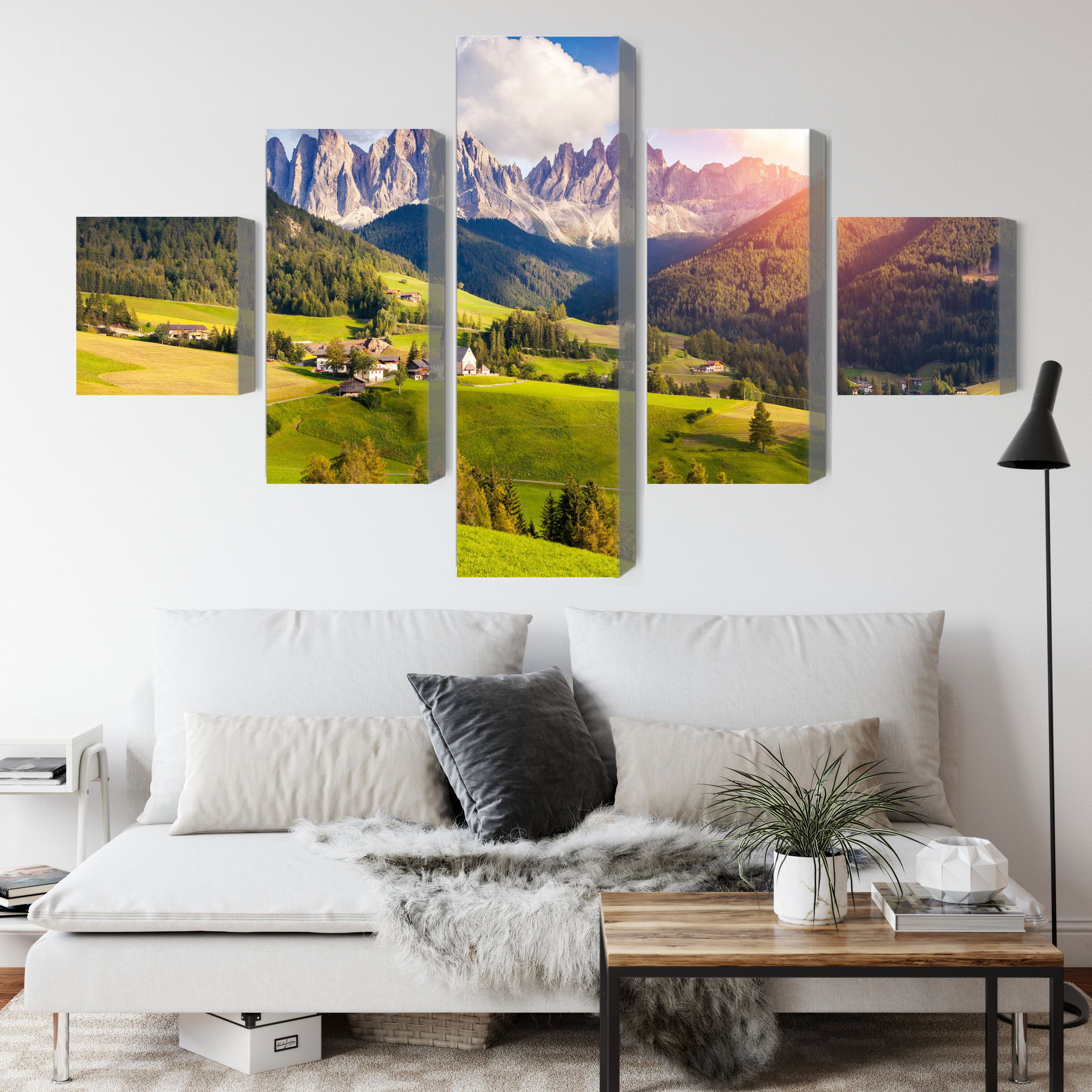 Ljuddämpande tavla – Sunny day in the mountains för lugnare rum och mjukare akustik