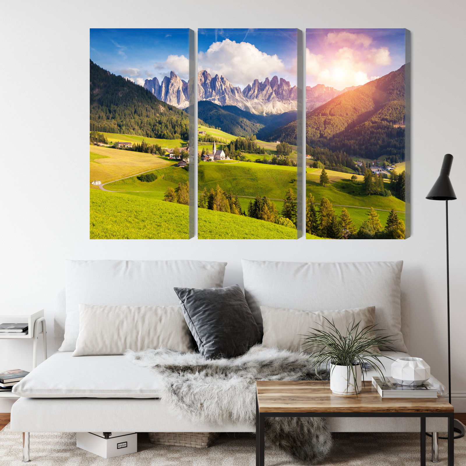 Ljuddämpande tavla – Sunny day in the mountains för lugnare rum och mjukare akustik