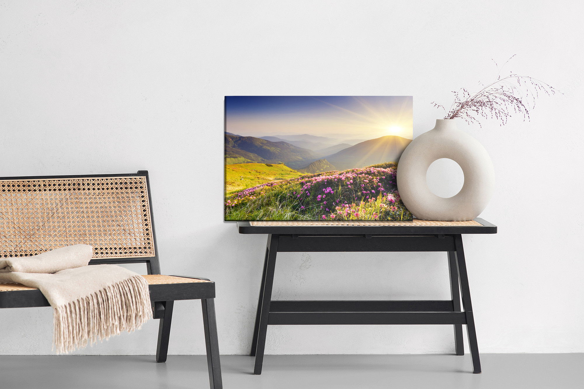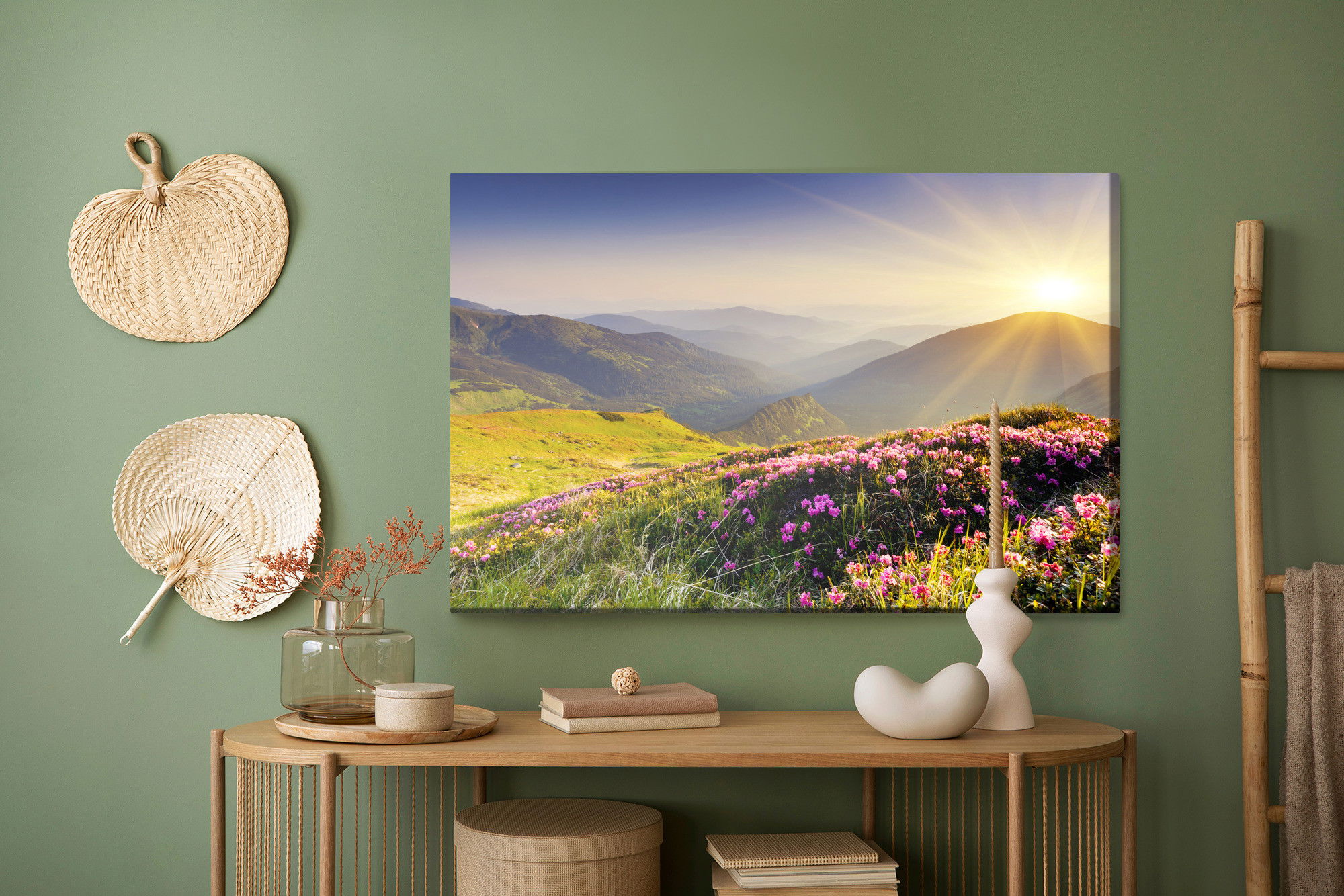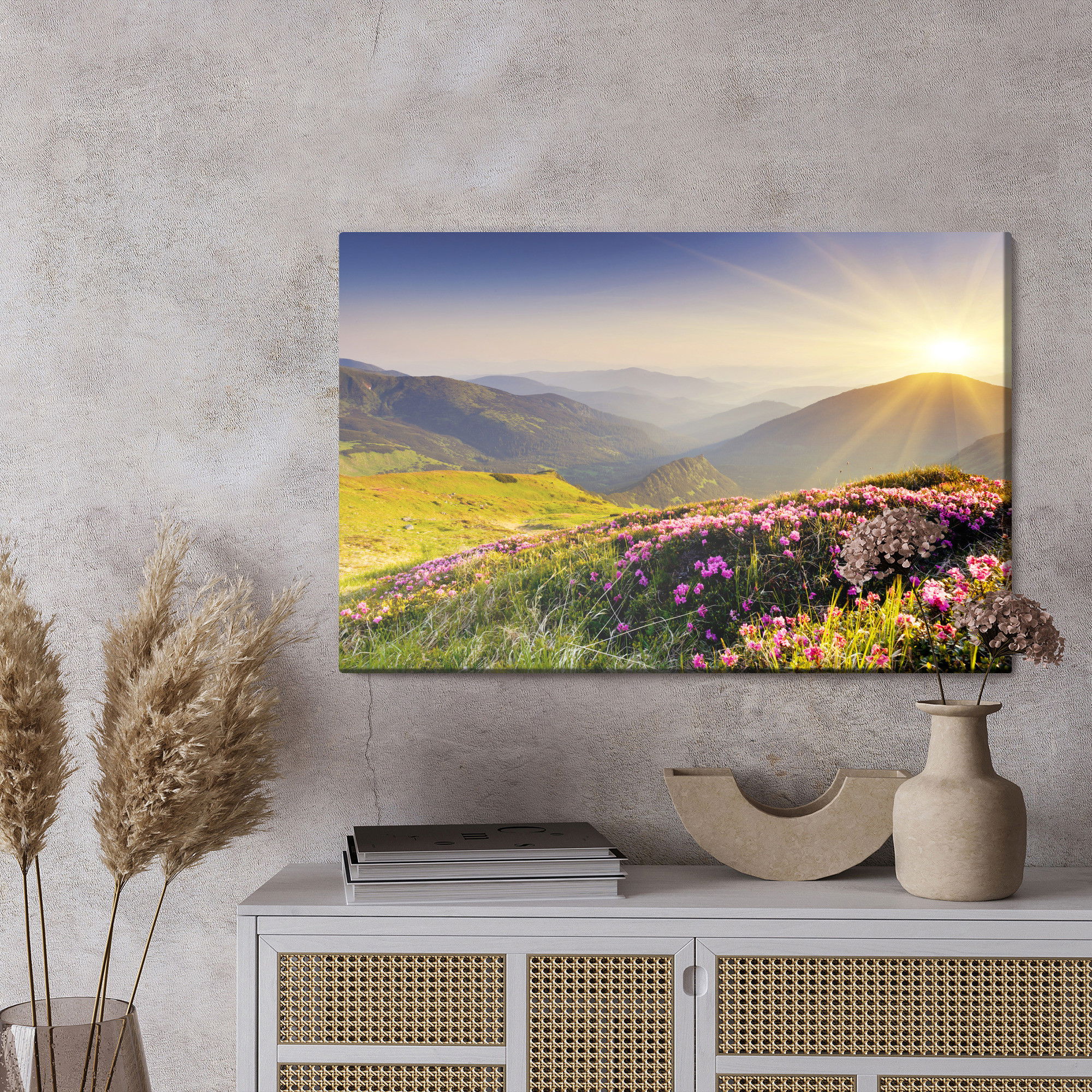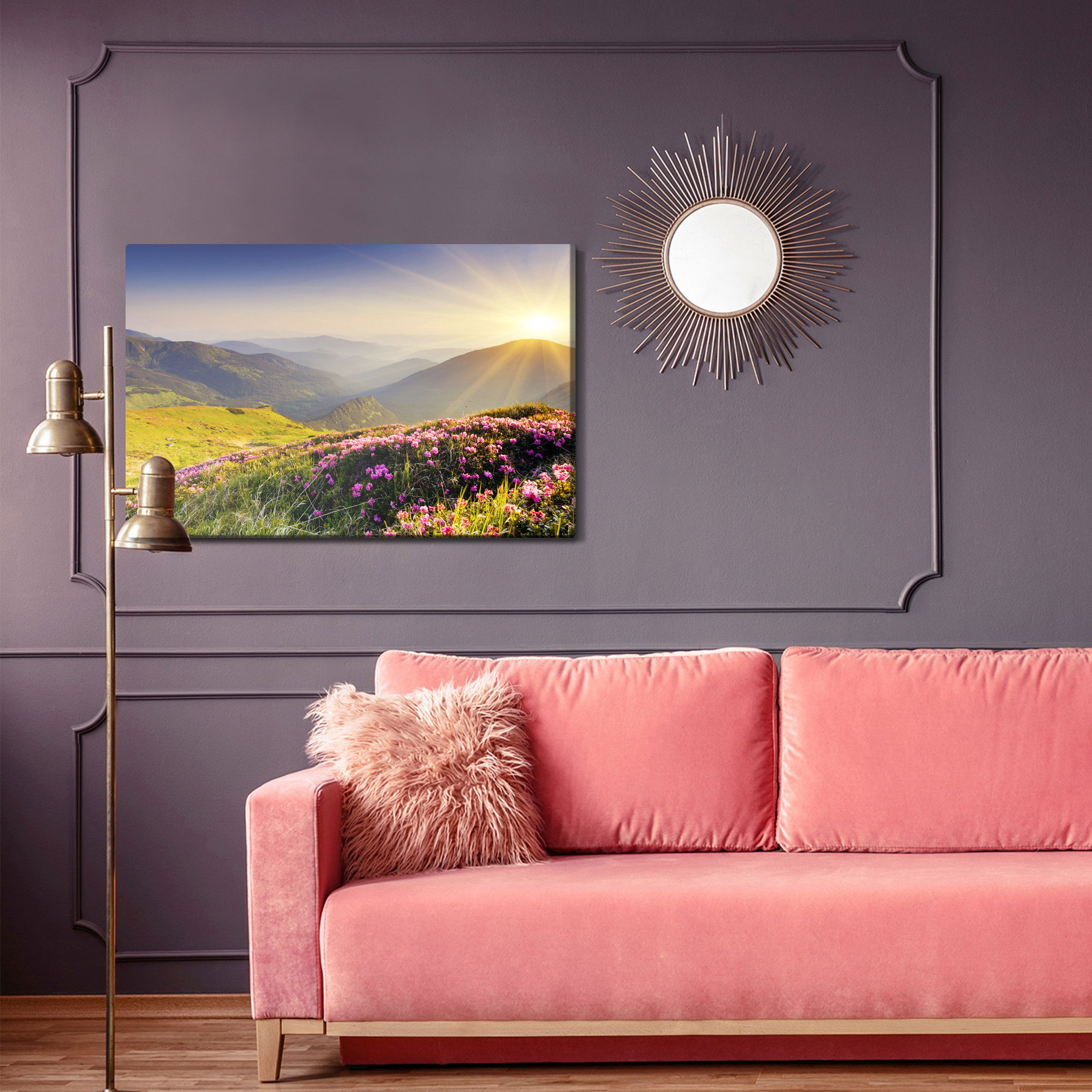 Ljuddämpande tavla – Sunset in the mountains för lugnare rum och mjukare akustik