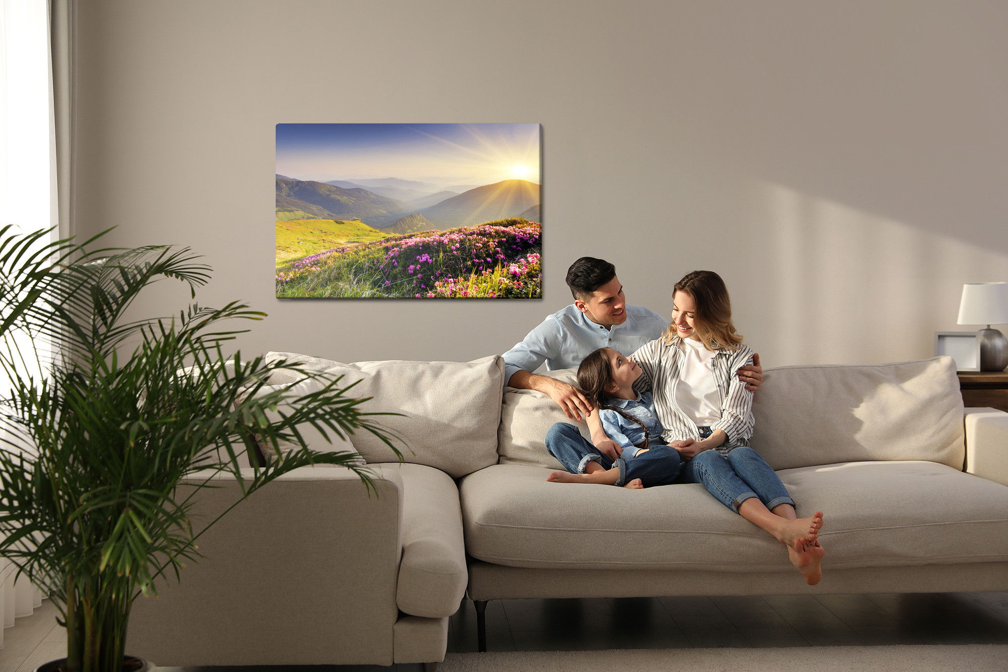 Varje tavla monteras på en massiv fururam. Format upp till 70×50 cm har en ram på 15 mm, medan format från 90×60 cm och uppåt har en ram på 20 mm. Den exakta dukspänningen gör att tavlan håller sin form över tid. Motivet trycks runt hela ramen vilket ger ett stilrent galleriuttryck där tavlan är lika vacker från sidan som framifrån. Kombinationen av rak dukspänning, rena linjer och korrekt tryck ger en professionell finish.