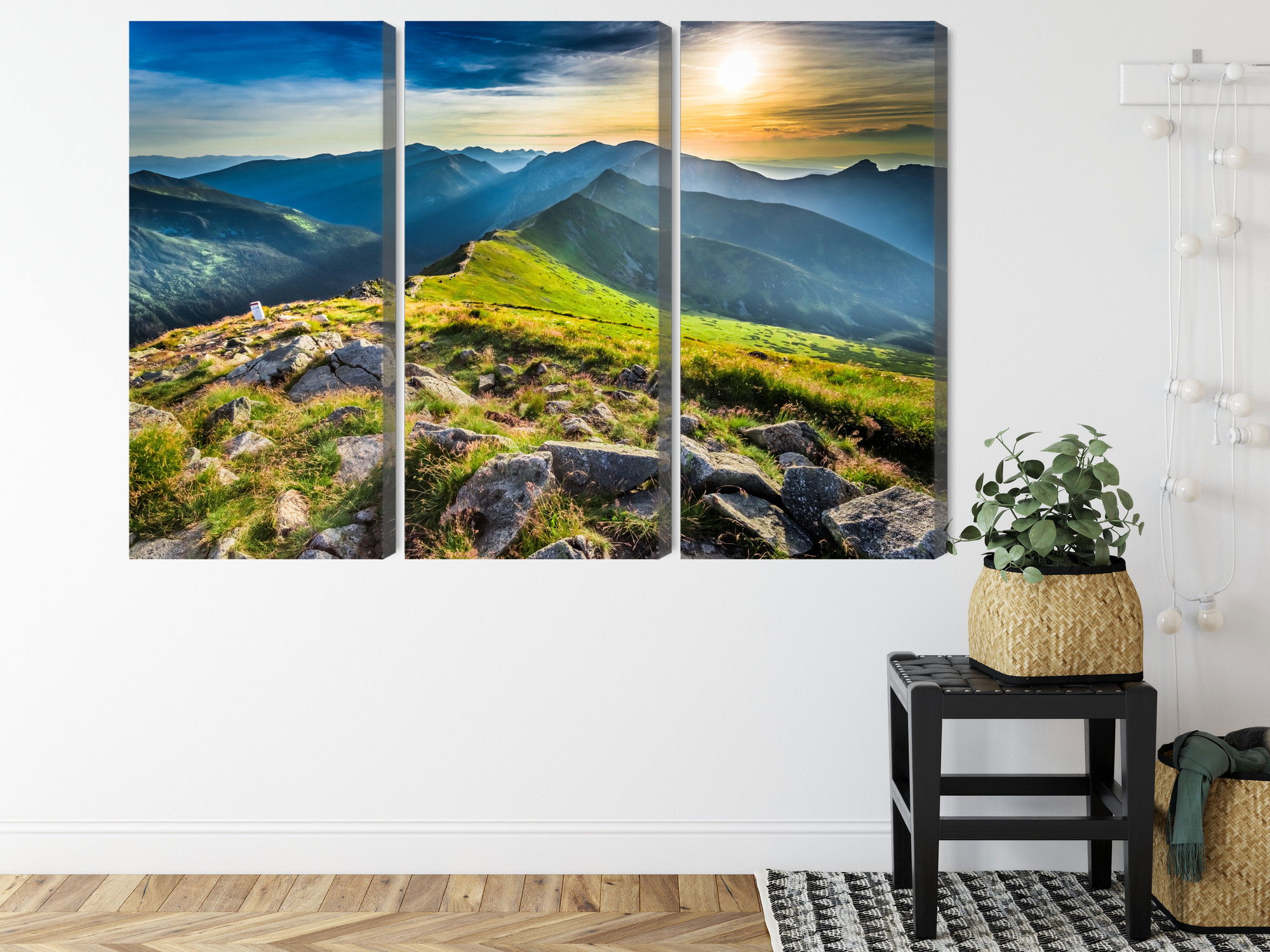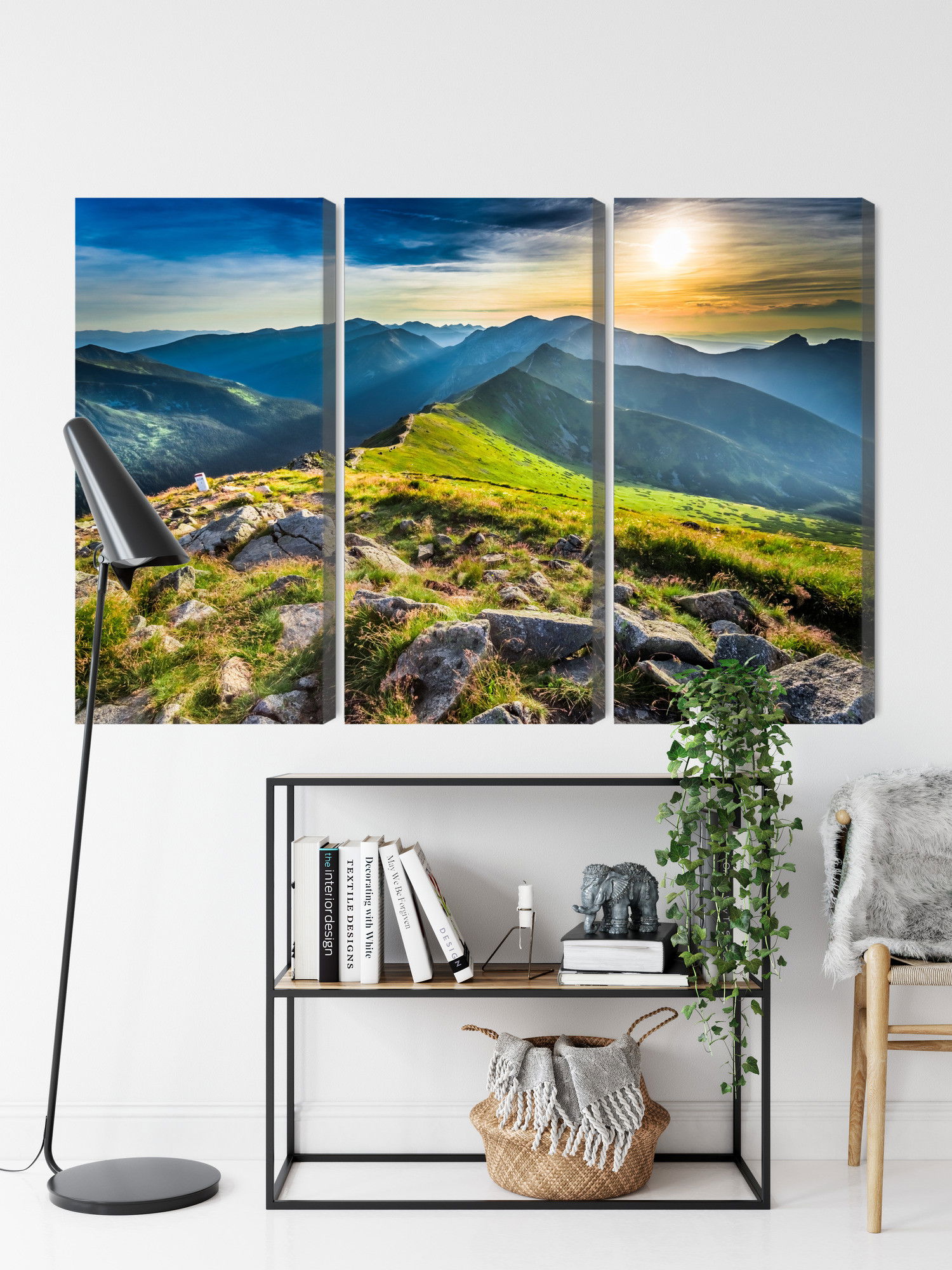 Ljuddämpande tavla – Sunset in the mountains 3d för lugnare rum och mjukare akustik