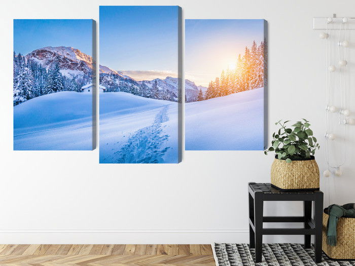 Ljuddämpande tavla – The alps at winter time 3d för lugnare rum och mjukare akustik