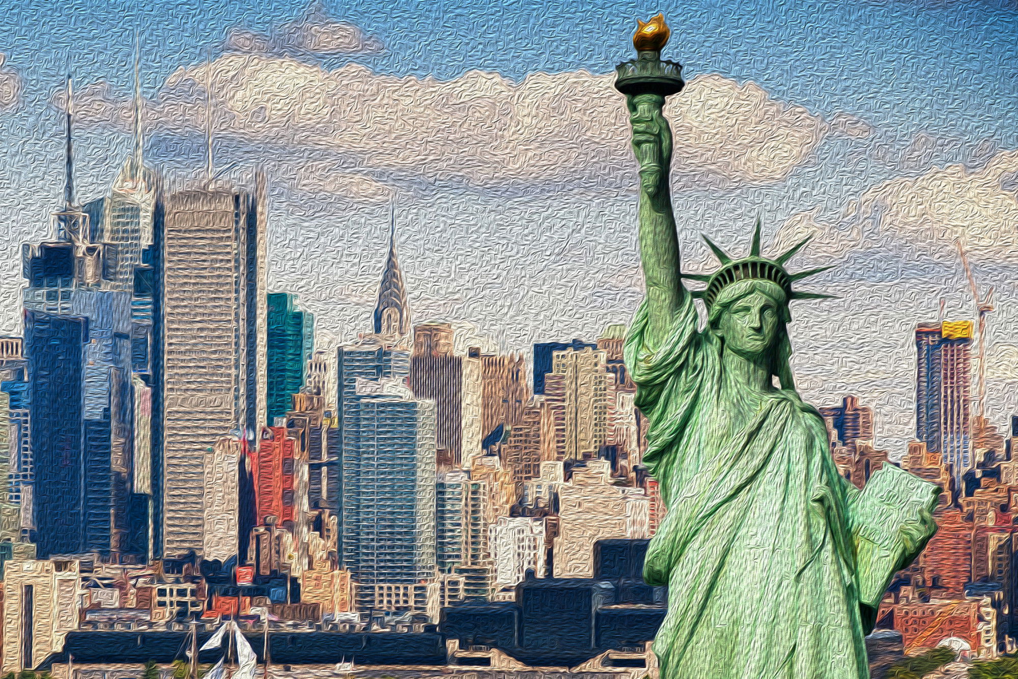 Ljuddämpande tavla – The statue of liberty in new för lugnare rum och mjukare akustik