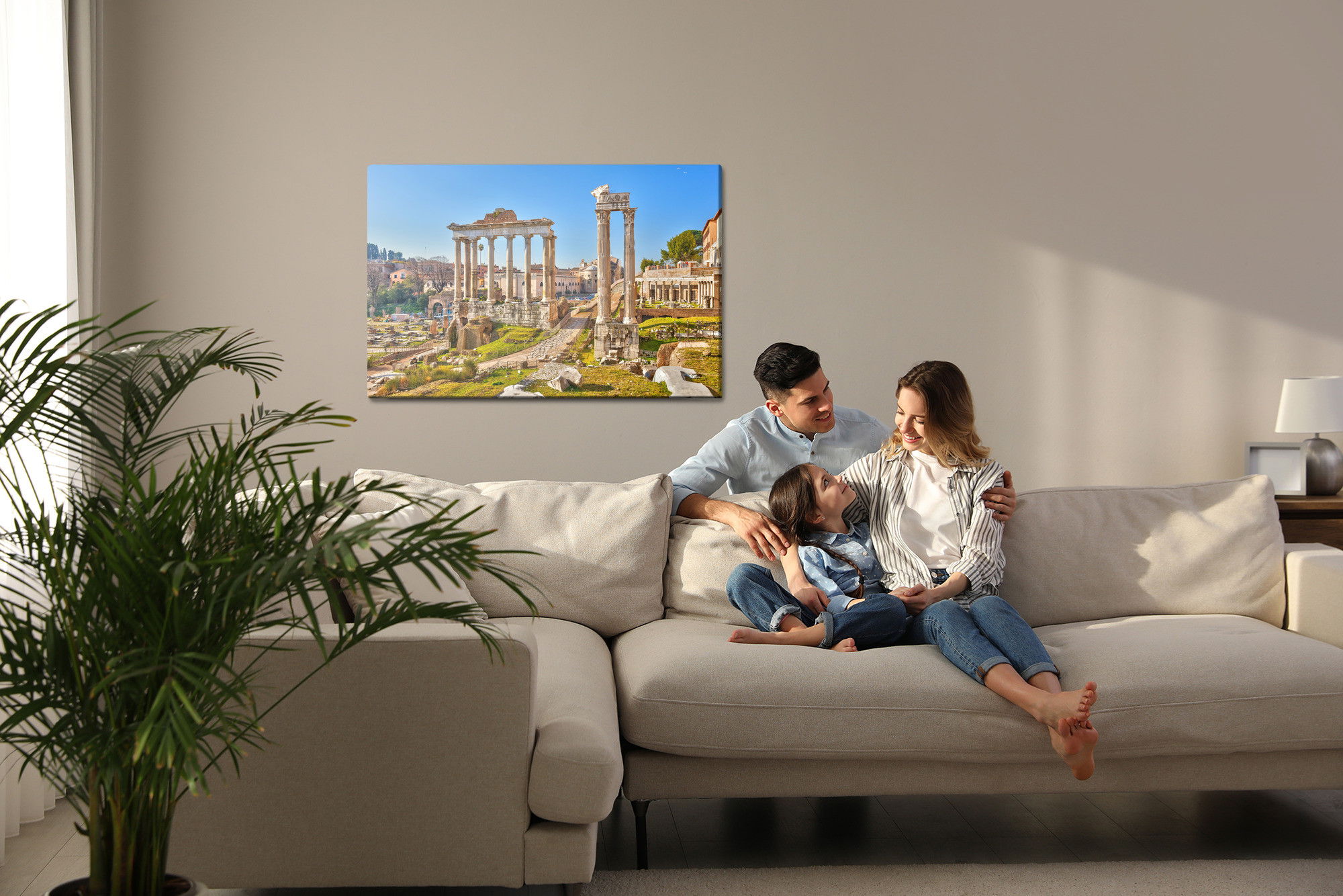 Motivet Views of Rome återges med hög färgprecision och detaljrikedom tack vare HP Latex-teknologi. Trycket sker med vattenbaserade, luktfria och GREENGUARD Gold-certifierade bläck som ger en upplösning på upp till 300 DPI. Färgerna är UV-beständiga och behåller sin styrka även i ljusa rum, vilket gör tavlan lämplig för både hem- och offentliga miljöer.