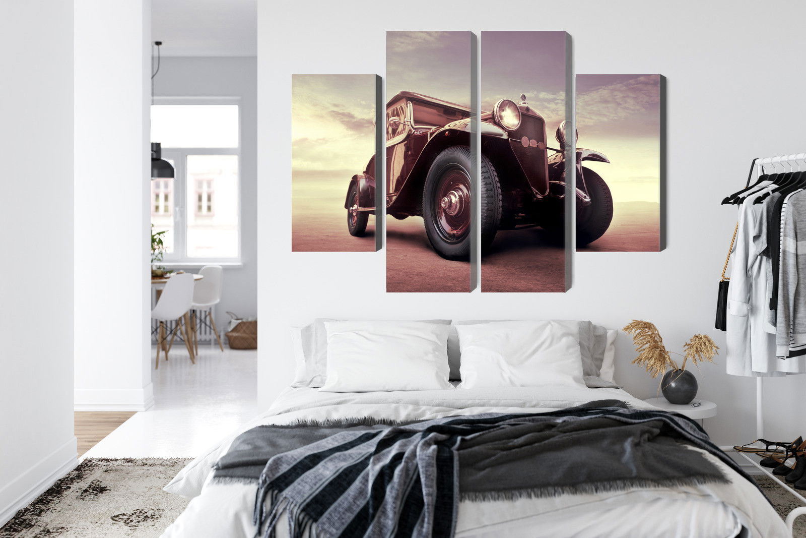 En ljuddämpande tavla Vintage car with a 3d effect är mer än en väggdekoration. En ljuddämpande tavla från SilentDirect fungerar som ett diskret men effektivt akustiskt komplement. Den mjukar upp ljudbilden, minskar eko och gör det mer behagligt att vistas i rummet under längre stunder. Samtidigt bidrar den till en mer genomarbetad helhet där både uttryck och funktion samspelar.