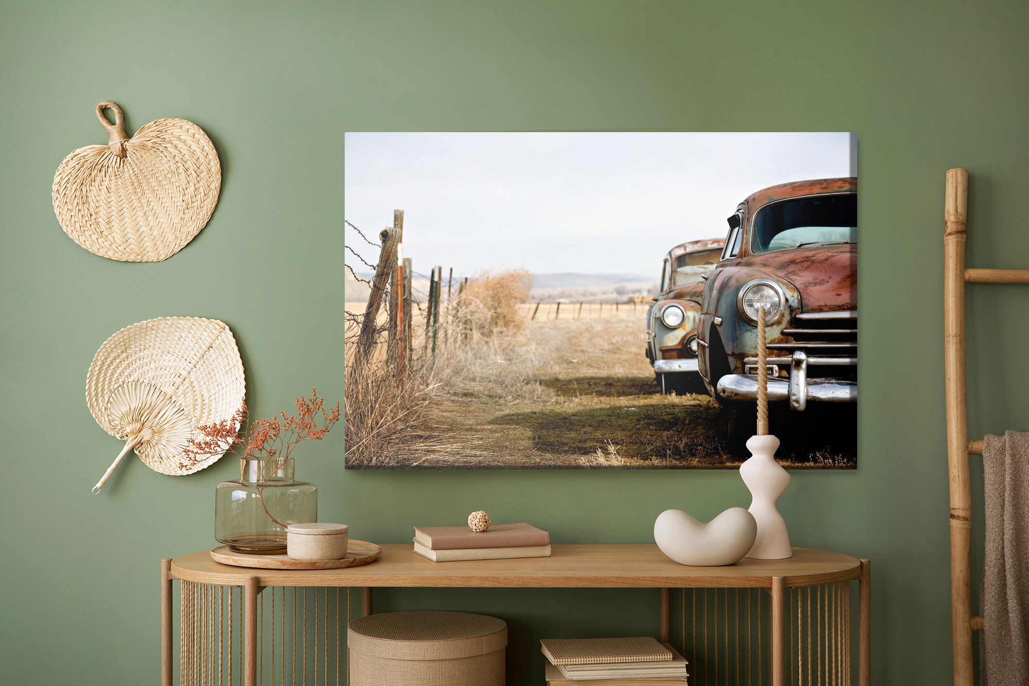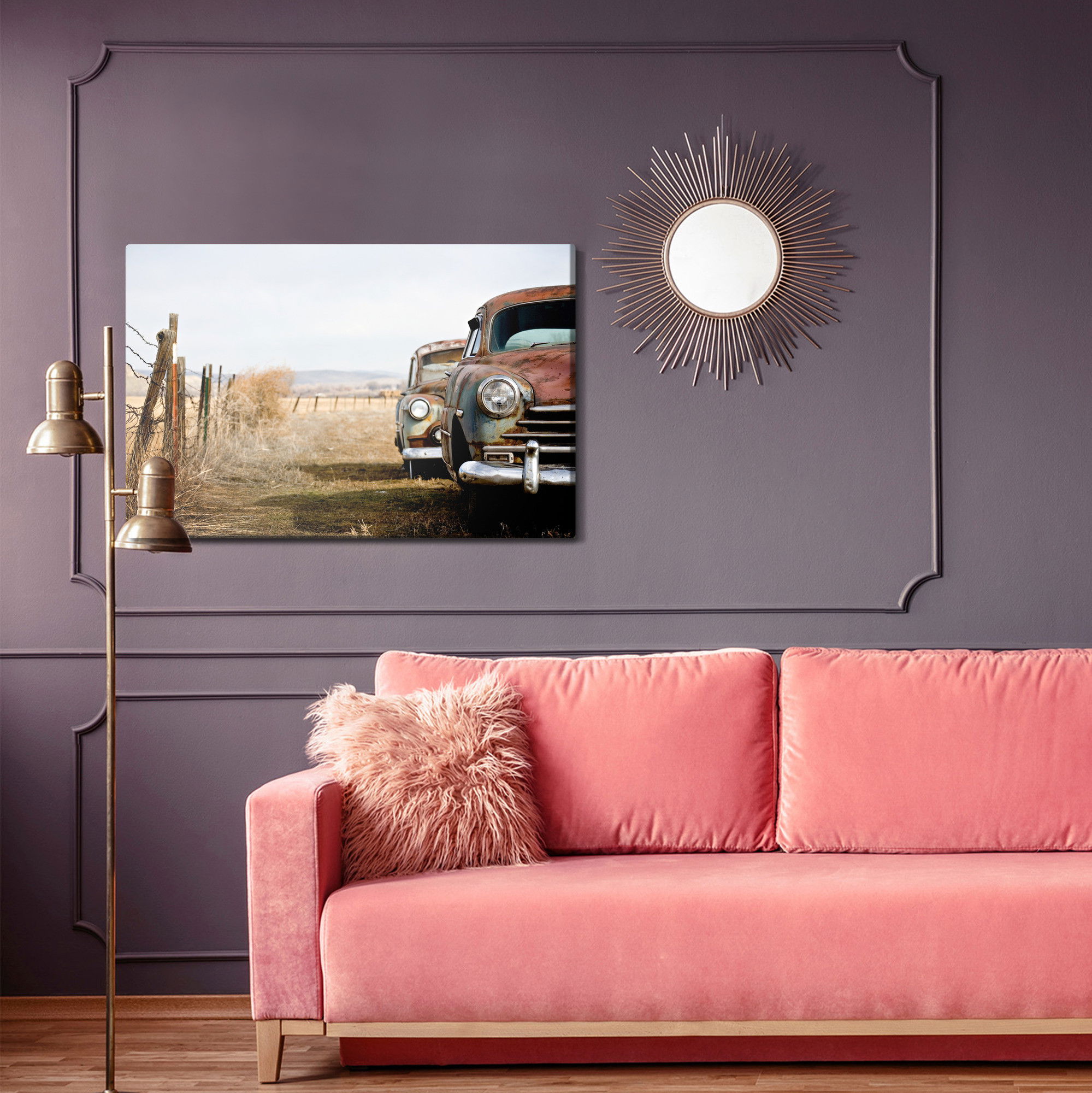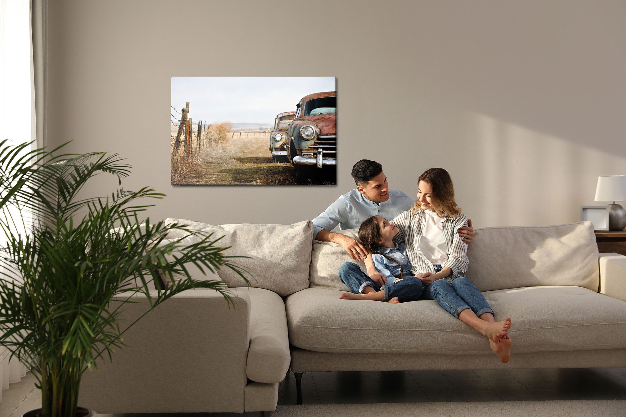 Motivet Vintage cars återges med hög färgprecision och detaljrikedom tack vare HP Latex-teknologi. Trycket sker med vattenbaserade, luktfria och GREENGUARD Gold-certifierade bläck som ger en upplösning på upp till 300 DPI. Färgerna är UV-beständiga och behåller sin styrka även i ljusa rum, vilket gör tavlan lämplig för både hem- och offentliga miljöer.