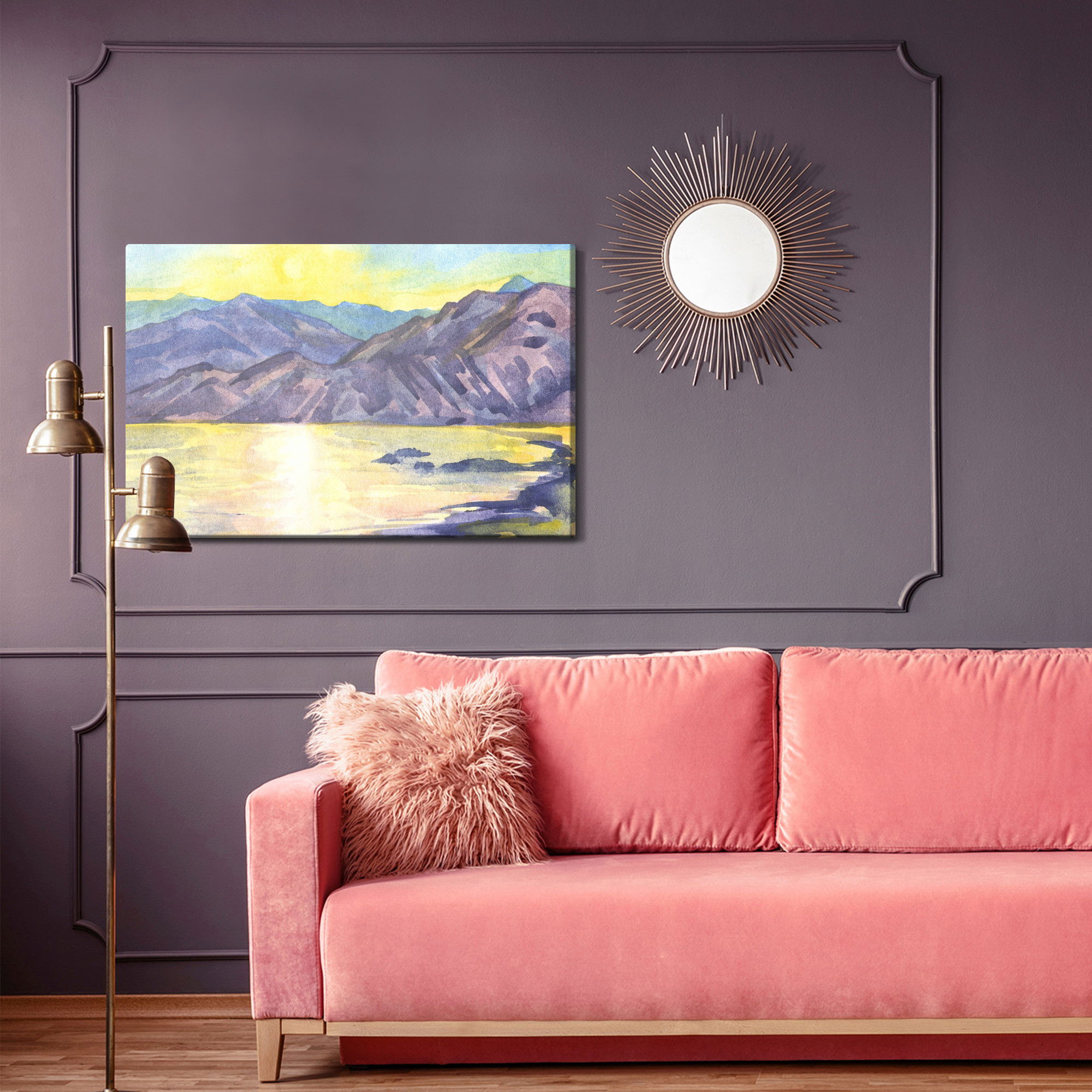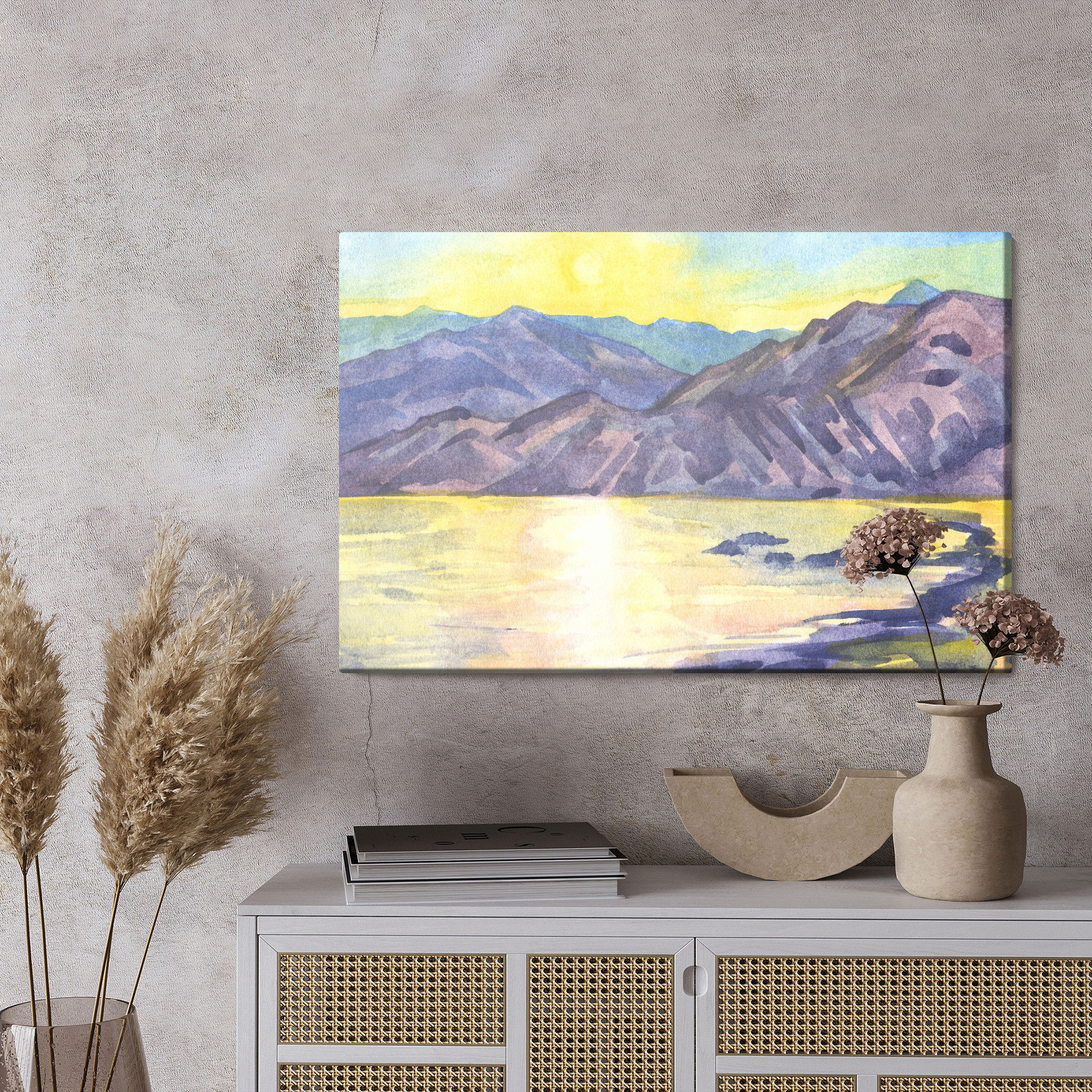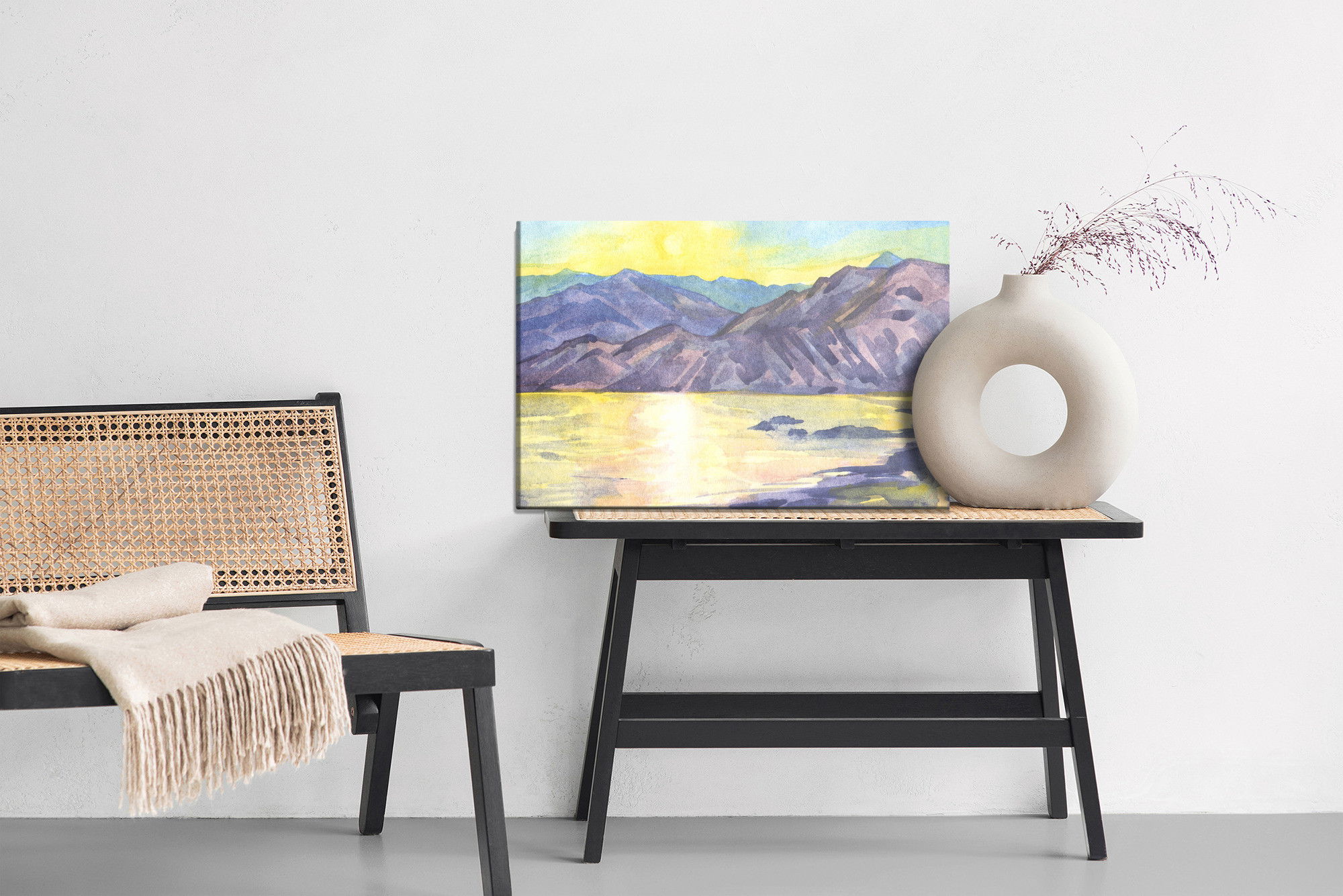 Ljuddämpande tavla – Watercolor mountain landscape för lugnare rum och mjukare akustik