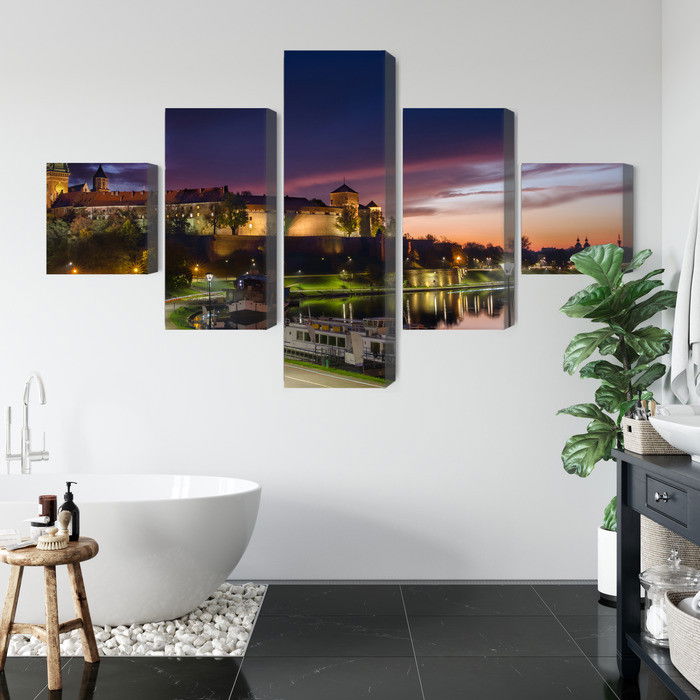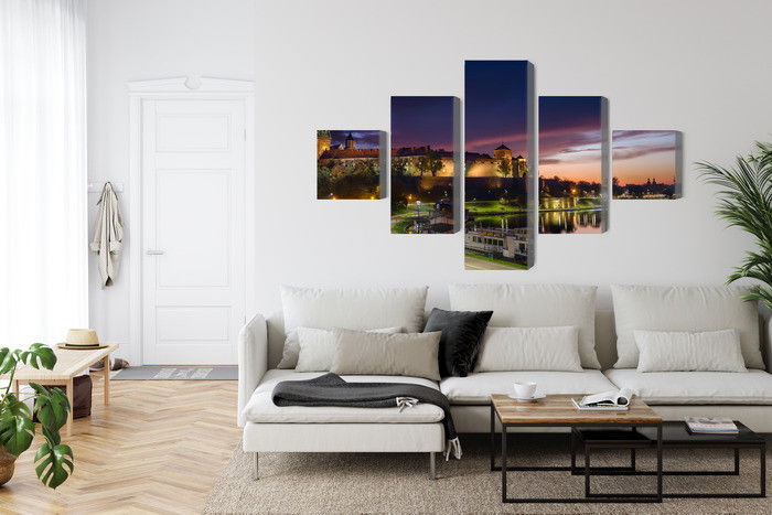 Varje tavla monteras på en massiv fururam. Format upp till 70×50 cm har en ram på 15 mm, medan format från 90×60 cm och uppåt har en ram på 20 mm. Den exakta dukspänningen gör att tavlan håller sin form över tid. Motivet Wawel royal castle at sunrise trycks runt hela ramen vilket ger ett stilrent galleriuttryck där tavlan är lika vacker från sidan som framifrån. Kombinationen av rak dukspänning, rena linjer och korrekt tryck ger en professionell finish.