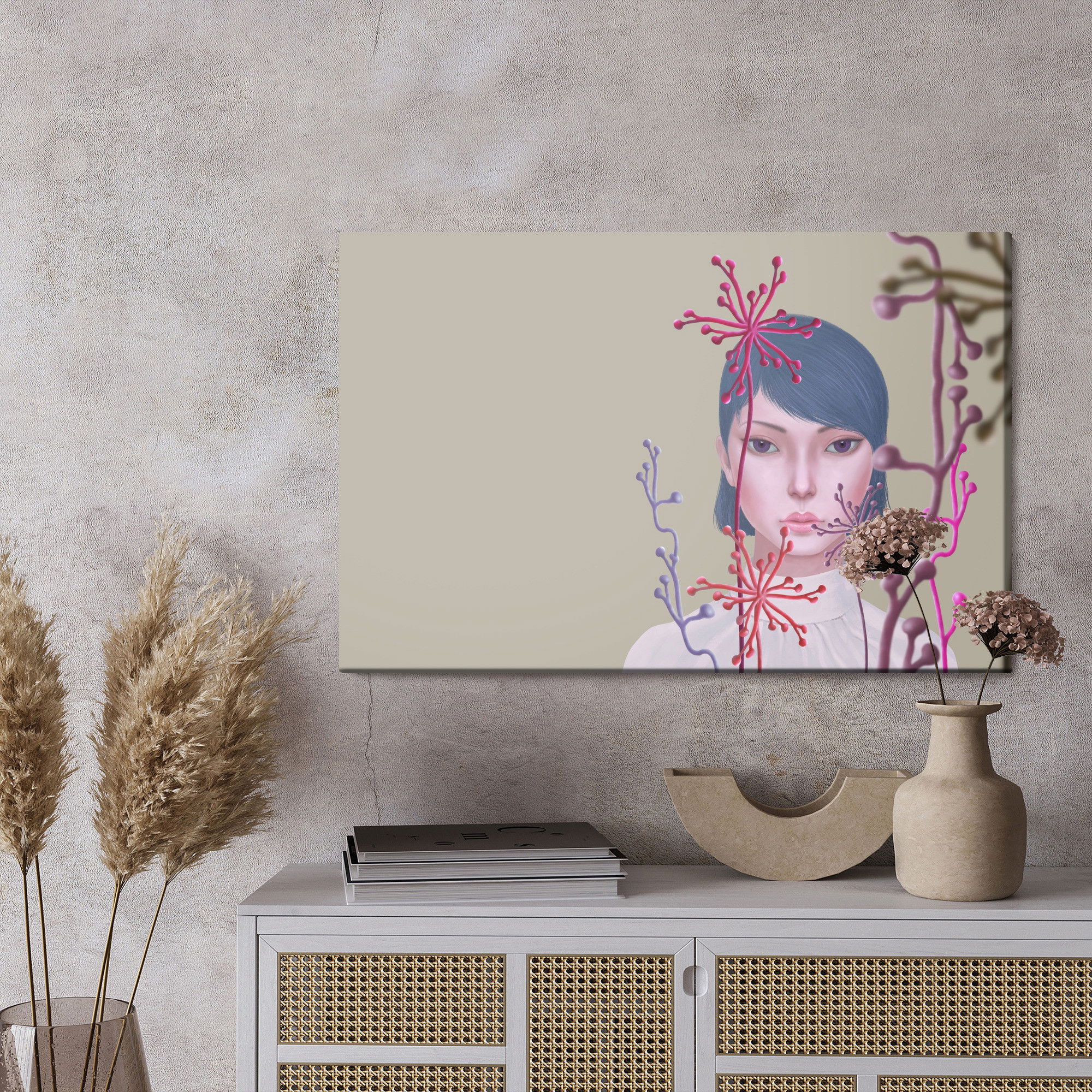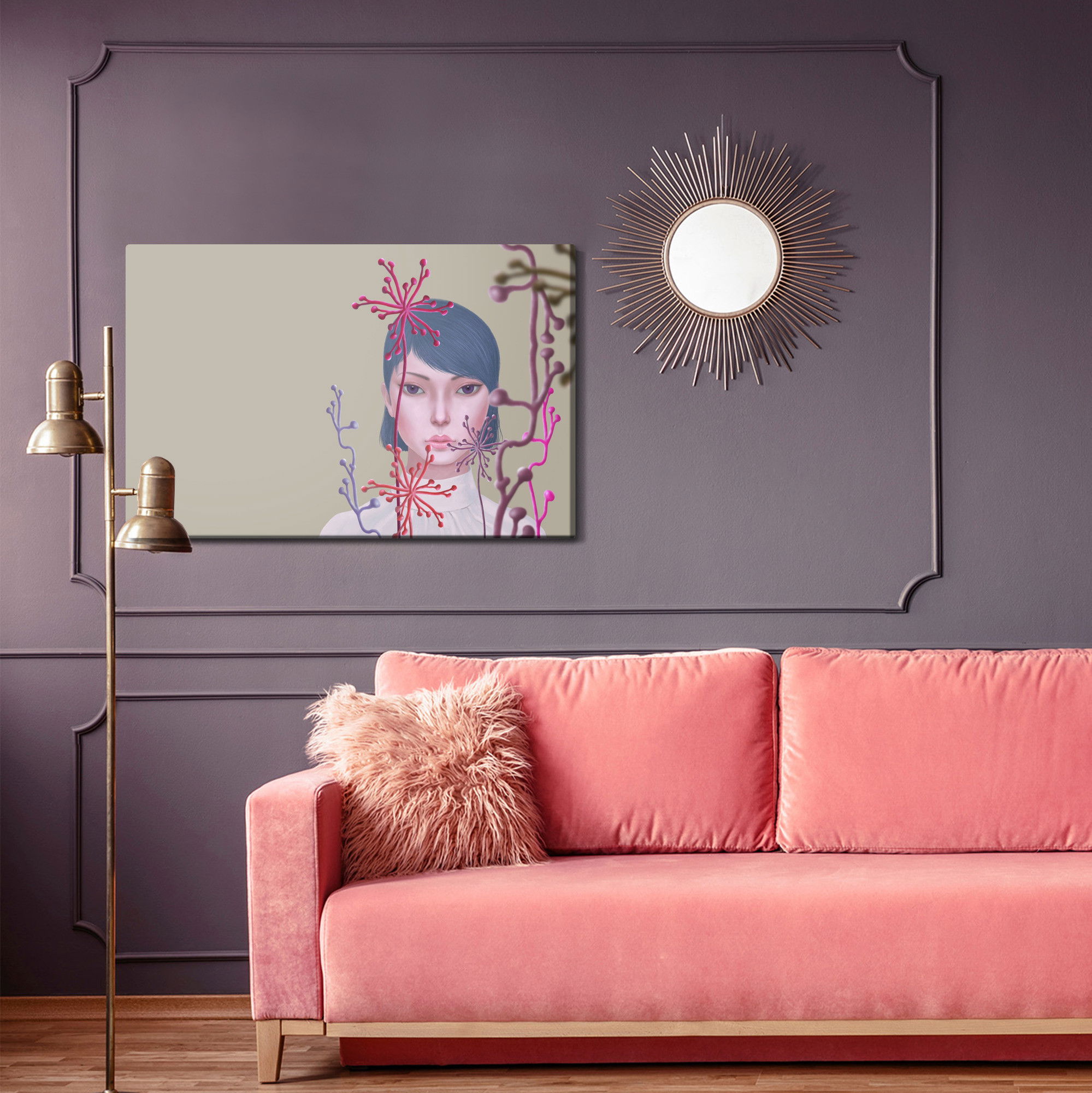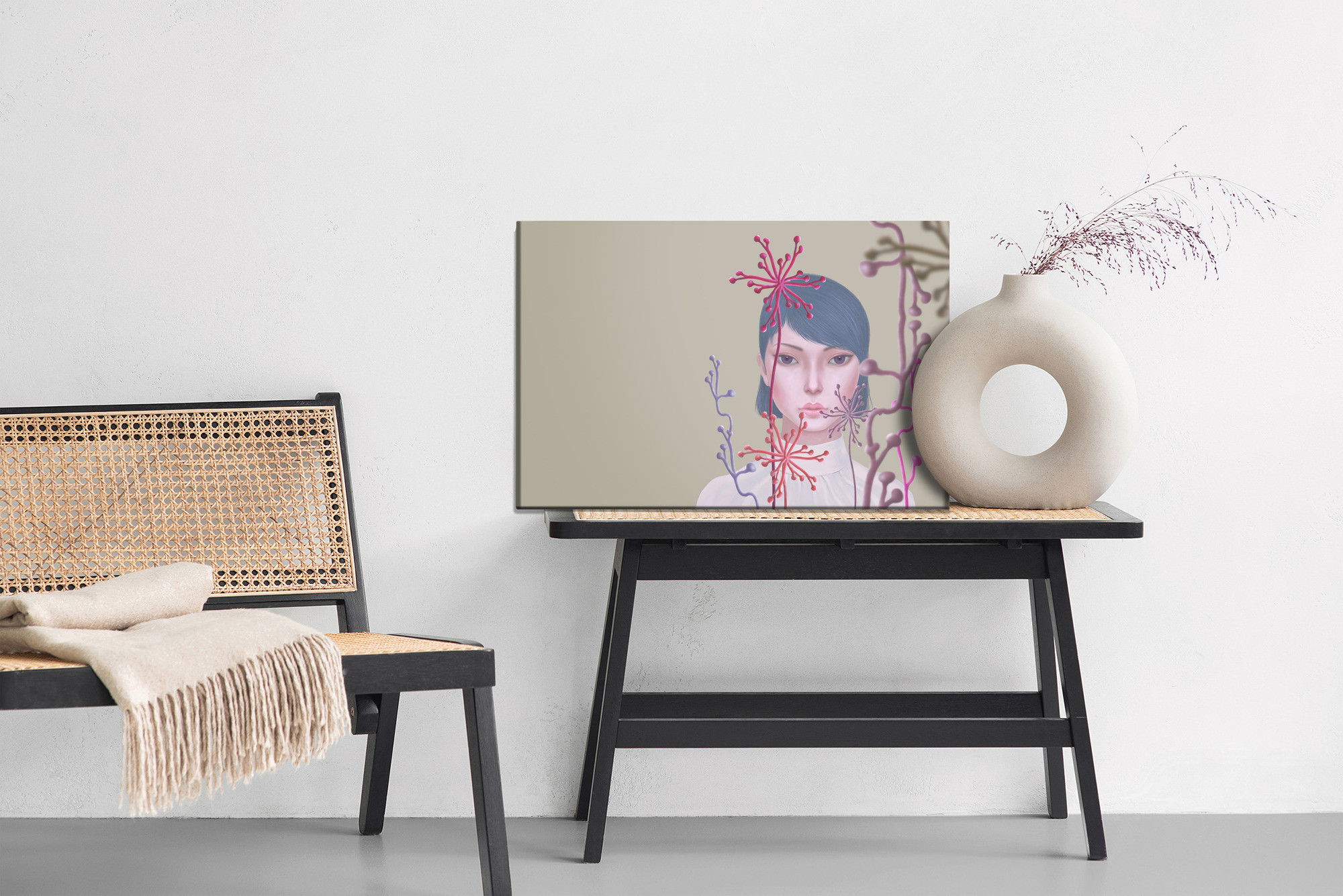 Ljuddämpande tavla – Woman and flower . concept för lugnare rum och mjukare akustik