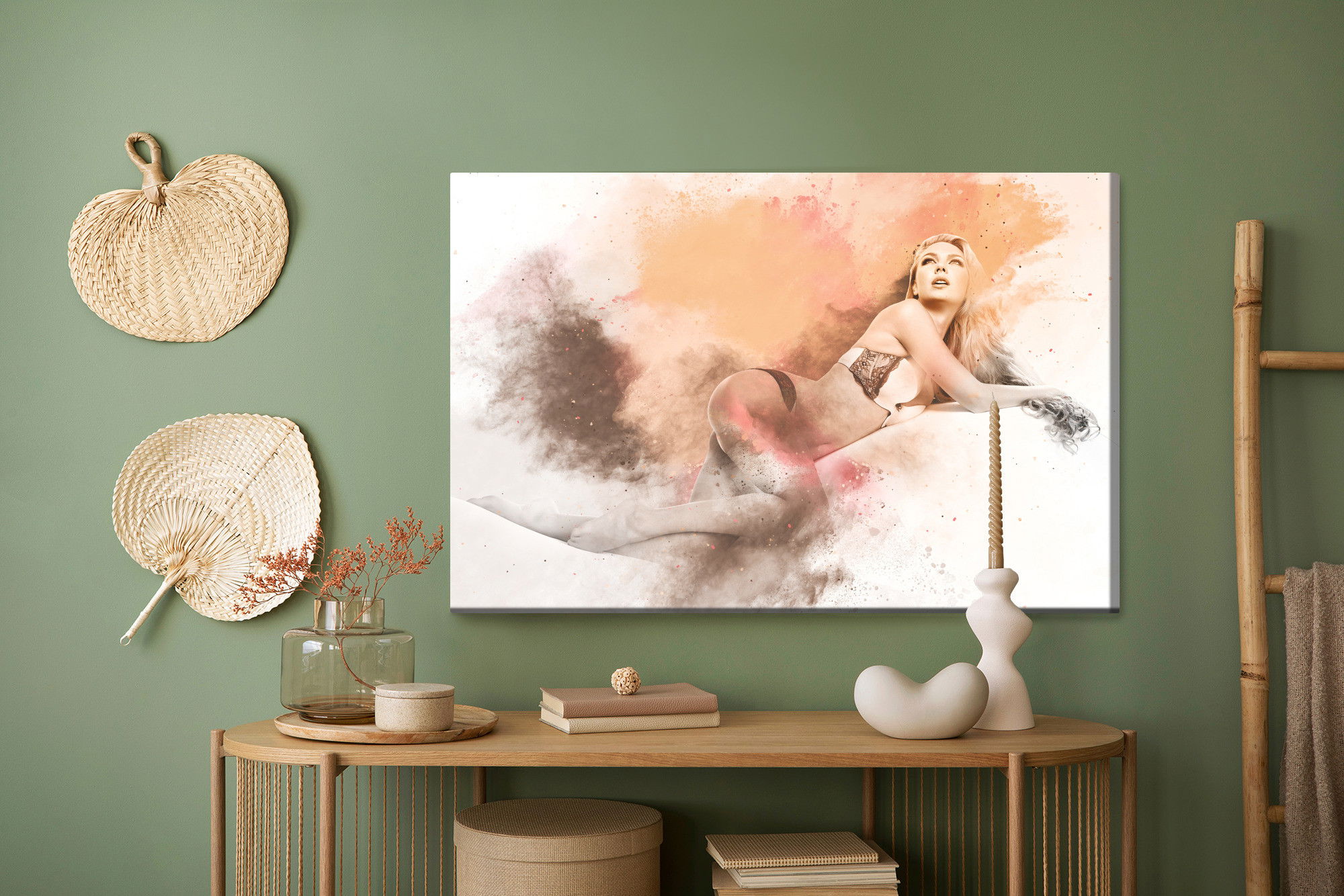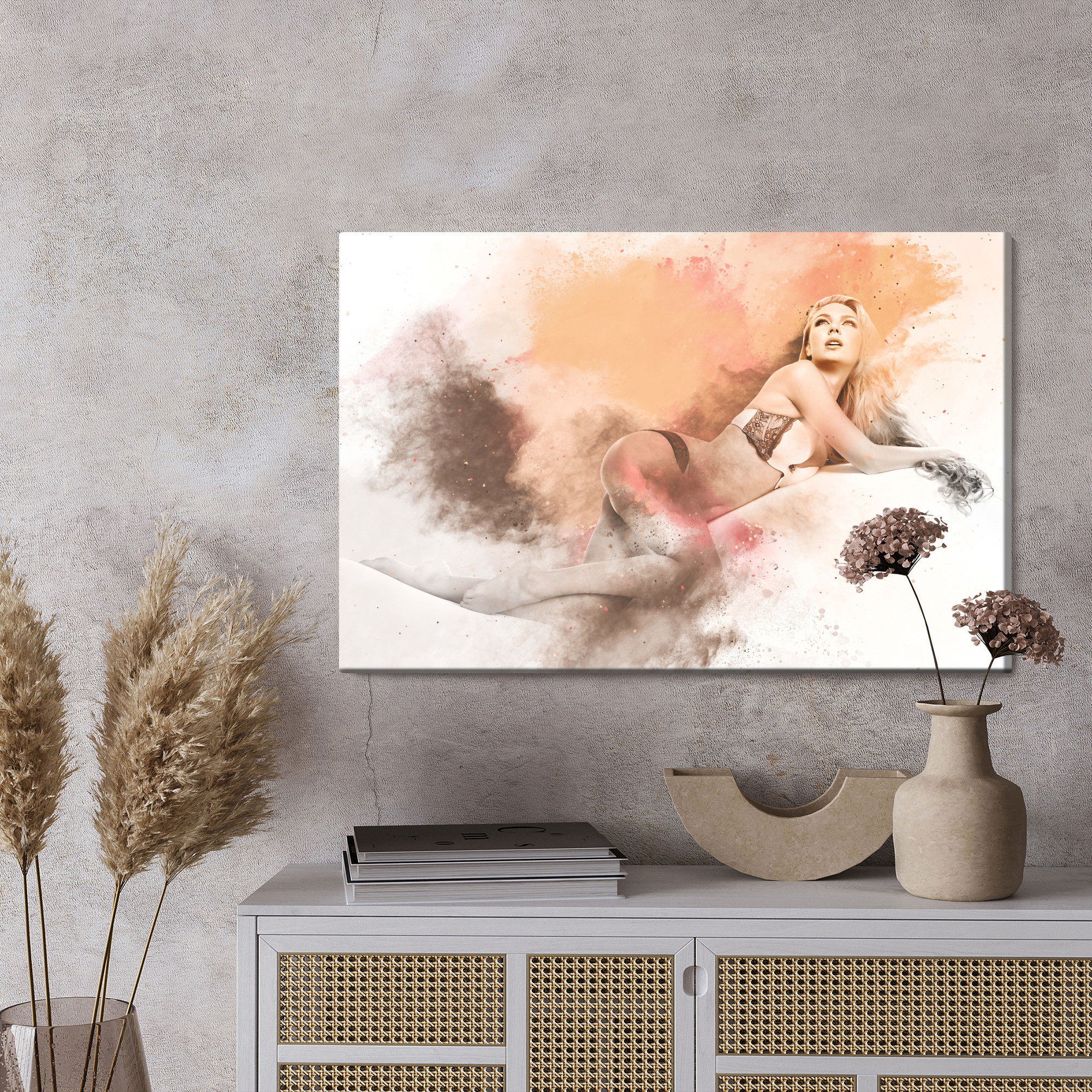 Ljuddämpande tavla – Woman in lingerie in sensual för lugnare rum och mjukare akustik