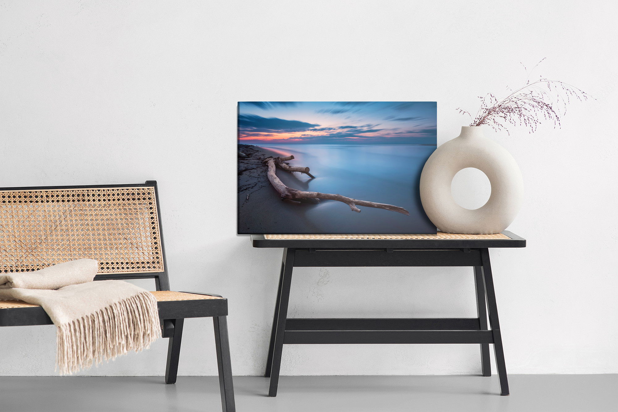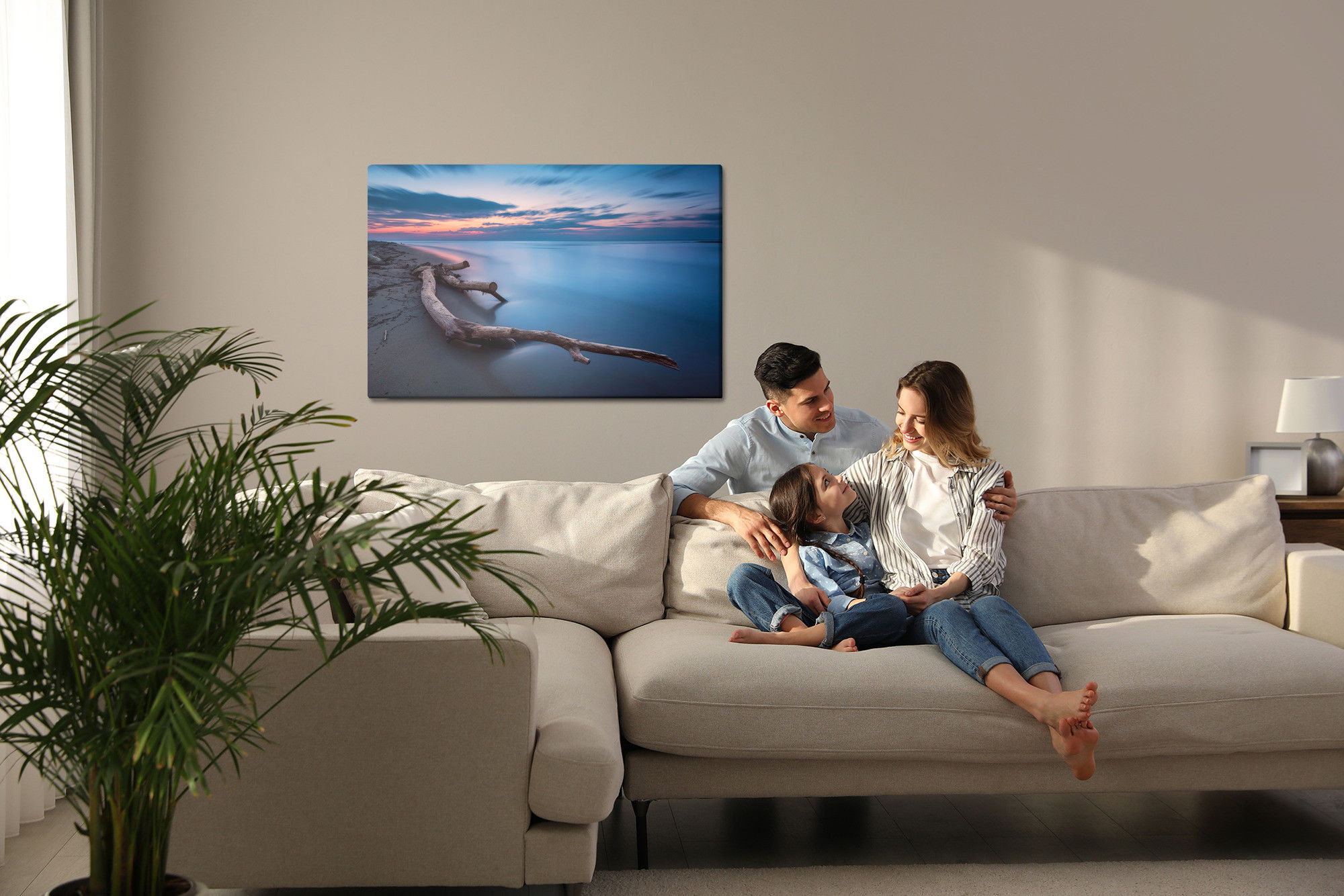 Varje tavla monteras på en massiv fururam. Format upp till 70×50 cm har en ram på 15 mm, medan format från 90×60 cm och uppåt har en ram på 20 mm. Den exakta dukspänningen gör att tavlan håller sin form över tid. Motivet trycks runt hela ramen vilket ger ett stilrent galleriuttryck där tavlan är lika vacker från sidan som framifrån. Kombinationen av rak dukspänning, rena linjer och korrekt tryck ger en professionell finish.