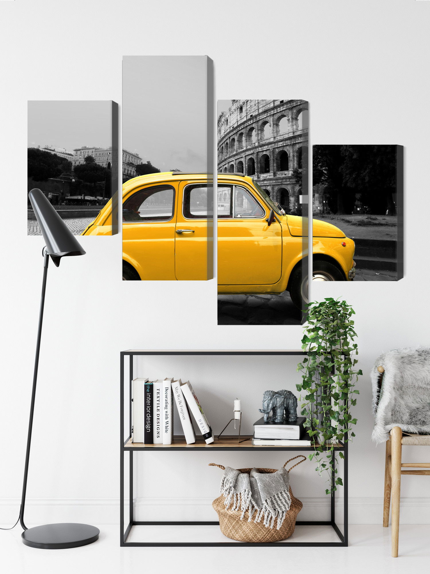 Ljuddämpande tavla – Yellow retro car för lugnare rum och mjukare akustik